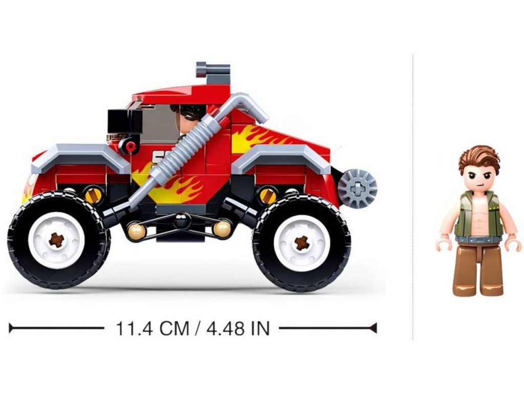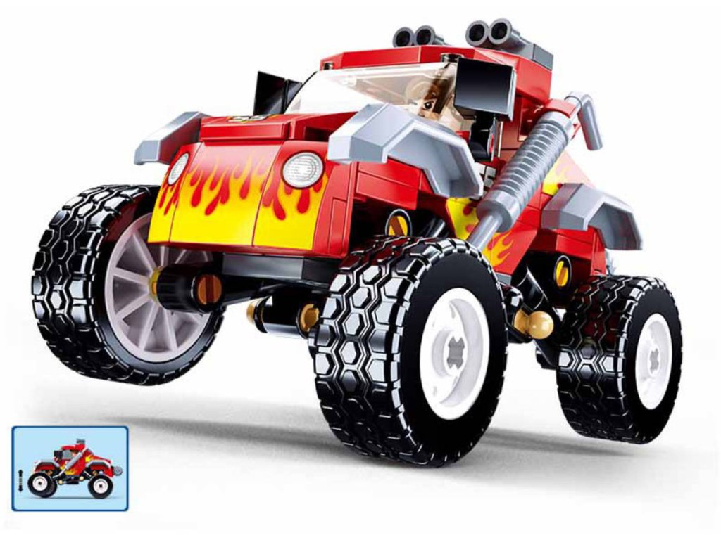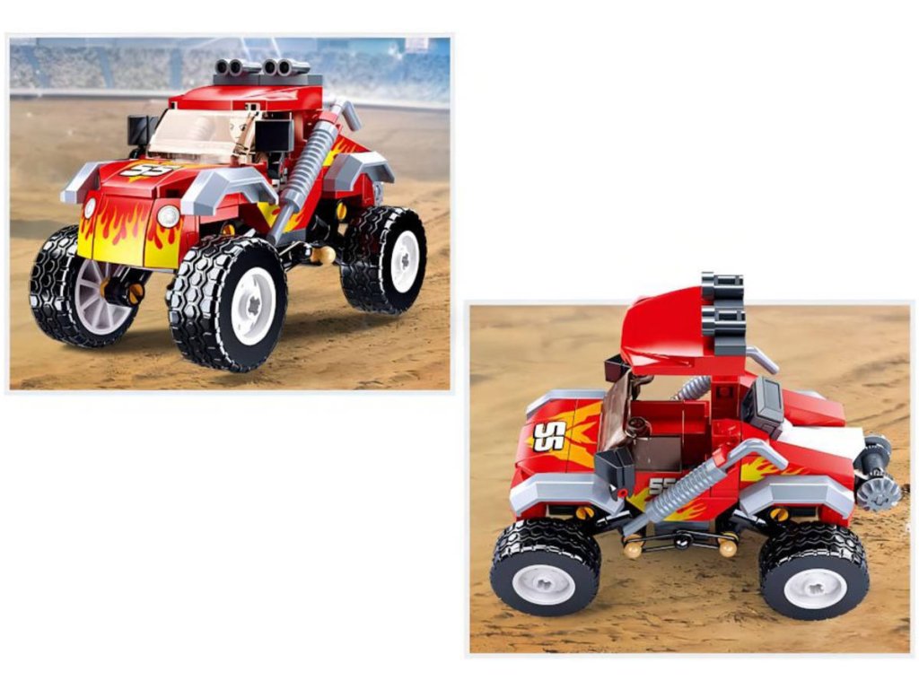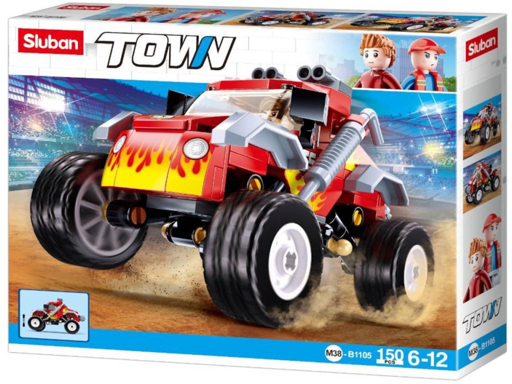 SLUBAN Town (M38-B1105) Červený závodní vůz na Offroad trial. Kvalitní plastová stavebnice. Lze kombinovat s většinou ostatních známých stavebnic. Součástí 1 figurka.