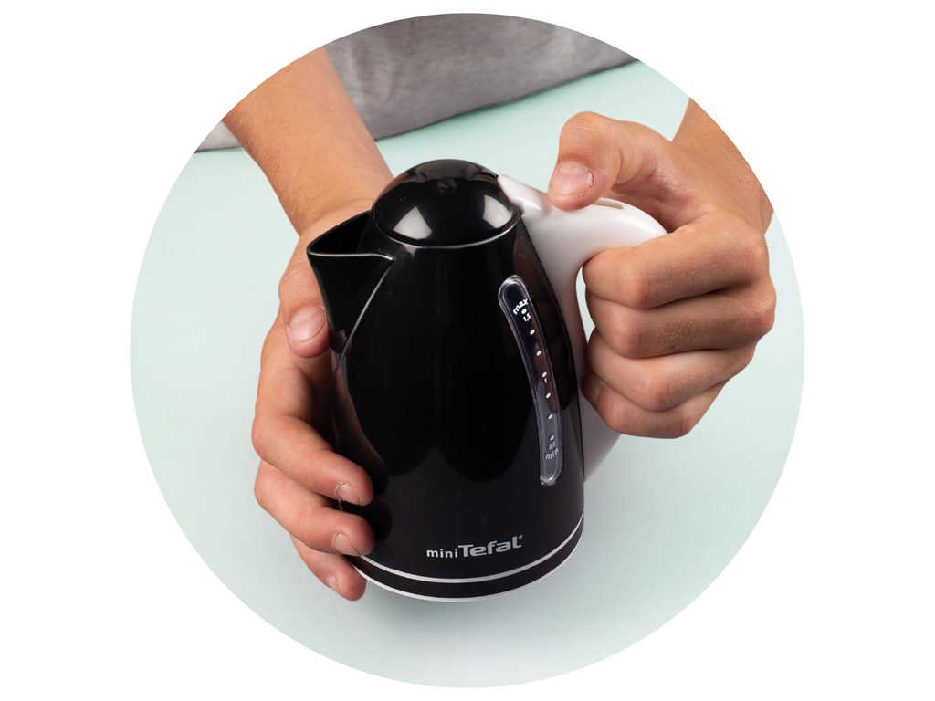 Věrná replika rychlovarné konvice mini Tefal "Express" jako doplněk pro kuchyňky od Smoby, pro všechny malé maminky a pomocnice v domácnosti. Víko lze otevřít. Mechanická funkce: po