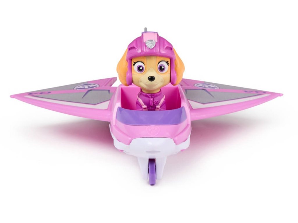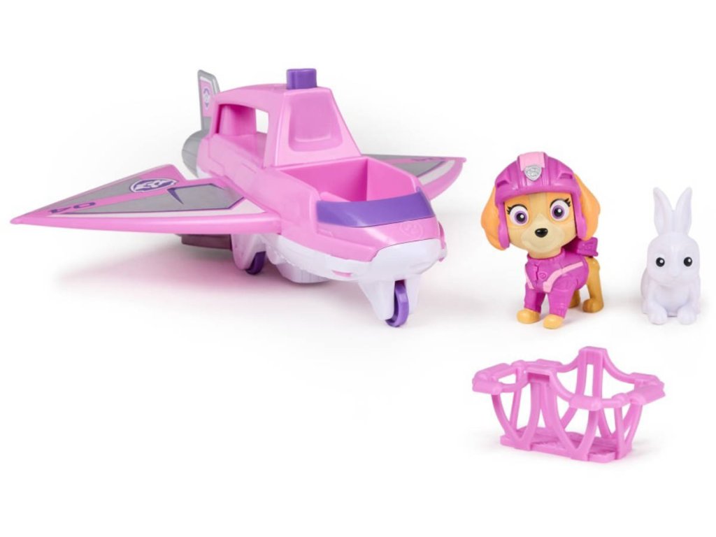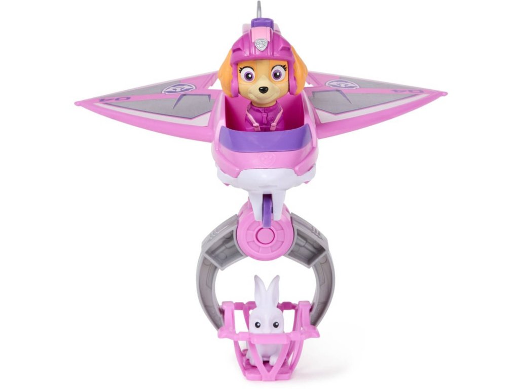 Leťte do akce se Skye z Tlapkové patroly Air Rescue a jejím hasičským záchranným tryskáčem! Když je čas na akci nabitou záchranu, upevněte nohy Skye do správné pozice v kokpitu a otočte vrtulemi, než se vydáte na misi! Zachraňte svou figurku králíčka stisknutím tlačítka v letadle pro prodloužení drápu a naberte tak králíčka záchranným košem a odvezte ho do bezpečí! Skye měří přes 5cm a je provedena v růžové letecké záchranné bundě a helmě! Pro ještě zajímavější způsoby hry hledejte Chase v jeho hrdinské helikoptéře a Marshalla s jeho hrdinským hydroplánem, abyste sestavili dokonalý záchranný tým!
