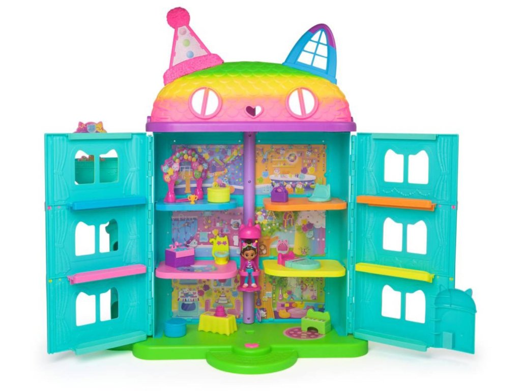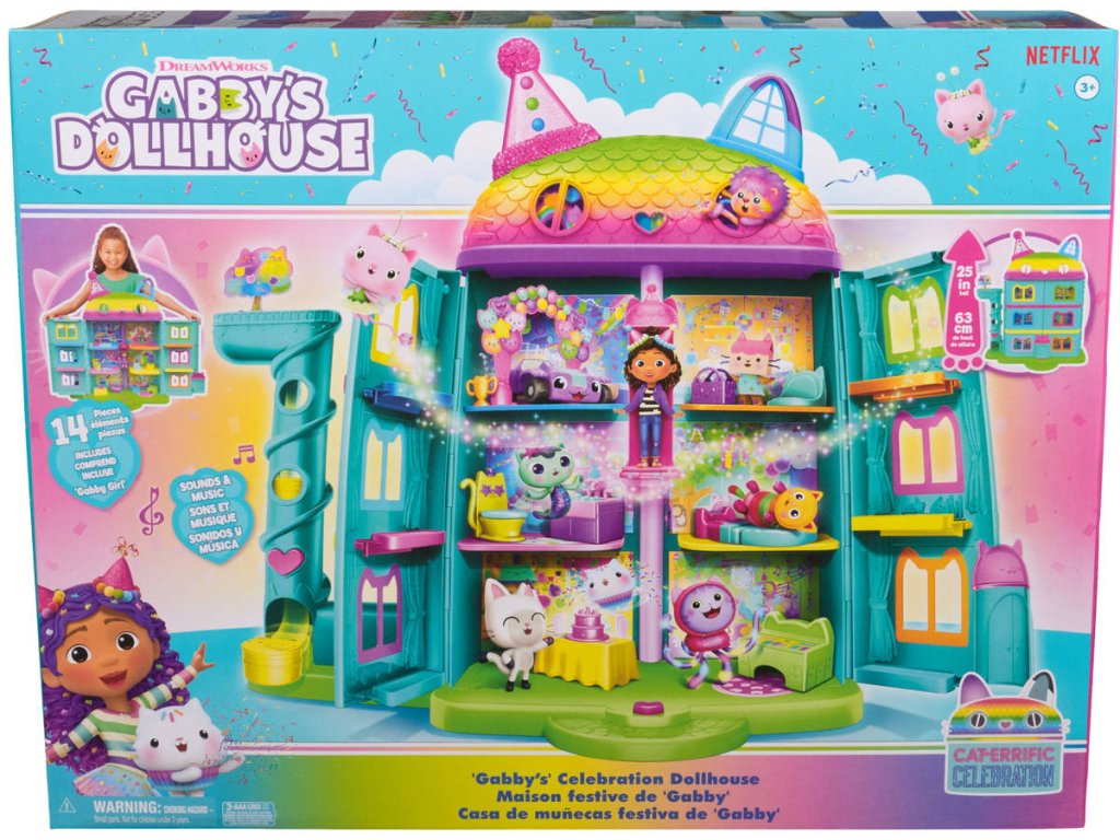 Gábinin kouzelný domek, herní set - Velký dům: Oslava. Součástí 60cm domeček, 9cm figurka Gábi, nábytek a vybavení.