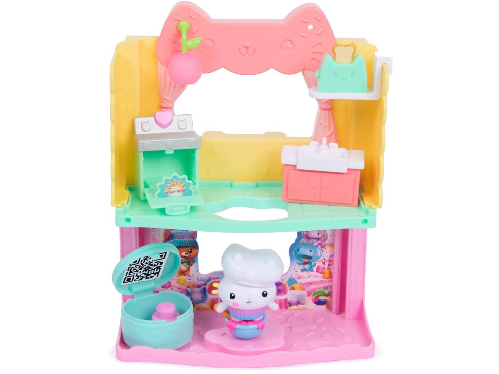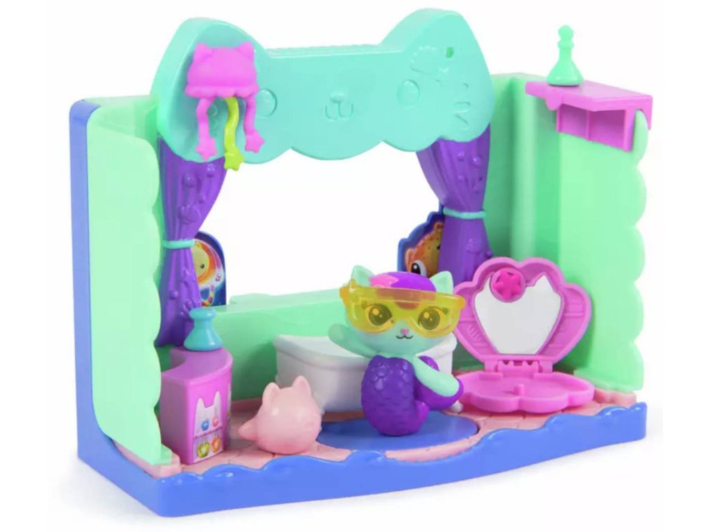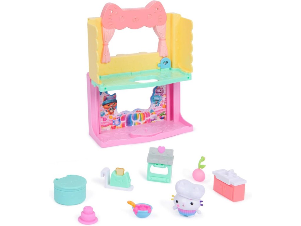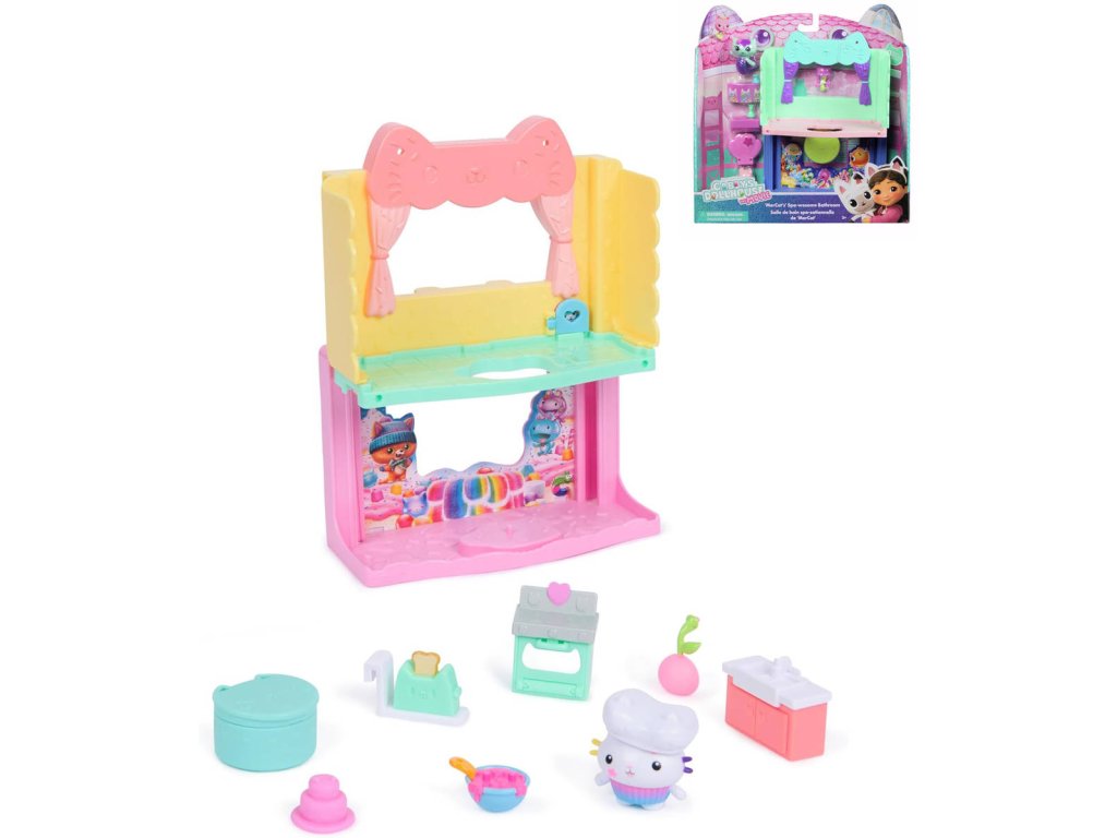 Speciální hrací sadu pokojíčků lze umístit do velkého domu Gabby's Dollhouse a učinit jej tak útulnějším, nebo si s ním lze hrát samostatně. Hrací sada má dokonce vysouvací dno. Po jeho vysunutí se tak promění ve dvoupatrový hrací set. Obsahuje figurku. Položka obsahuje nekolik různých druhů v assortu.