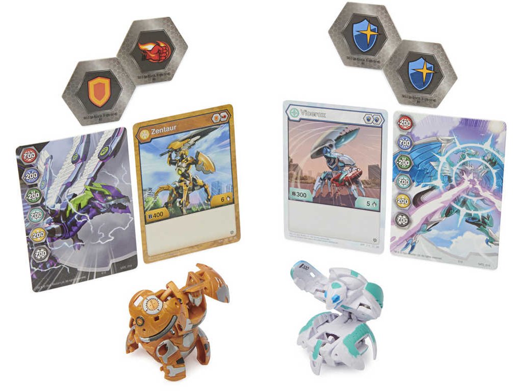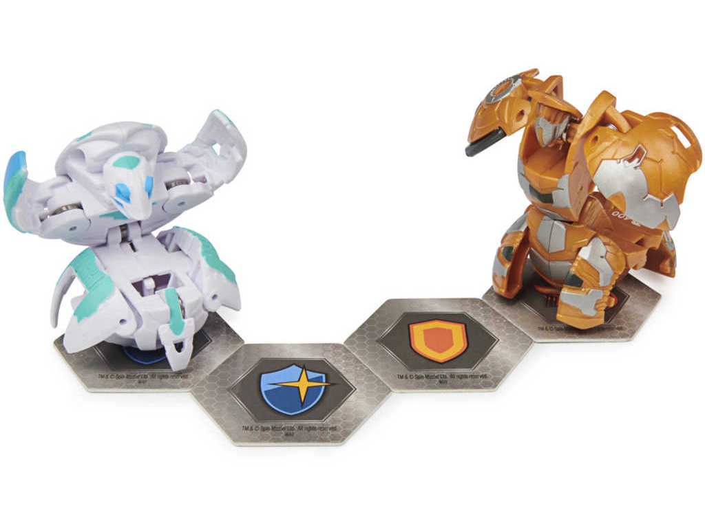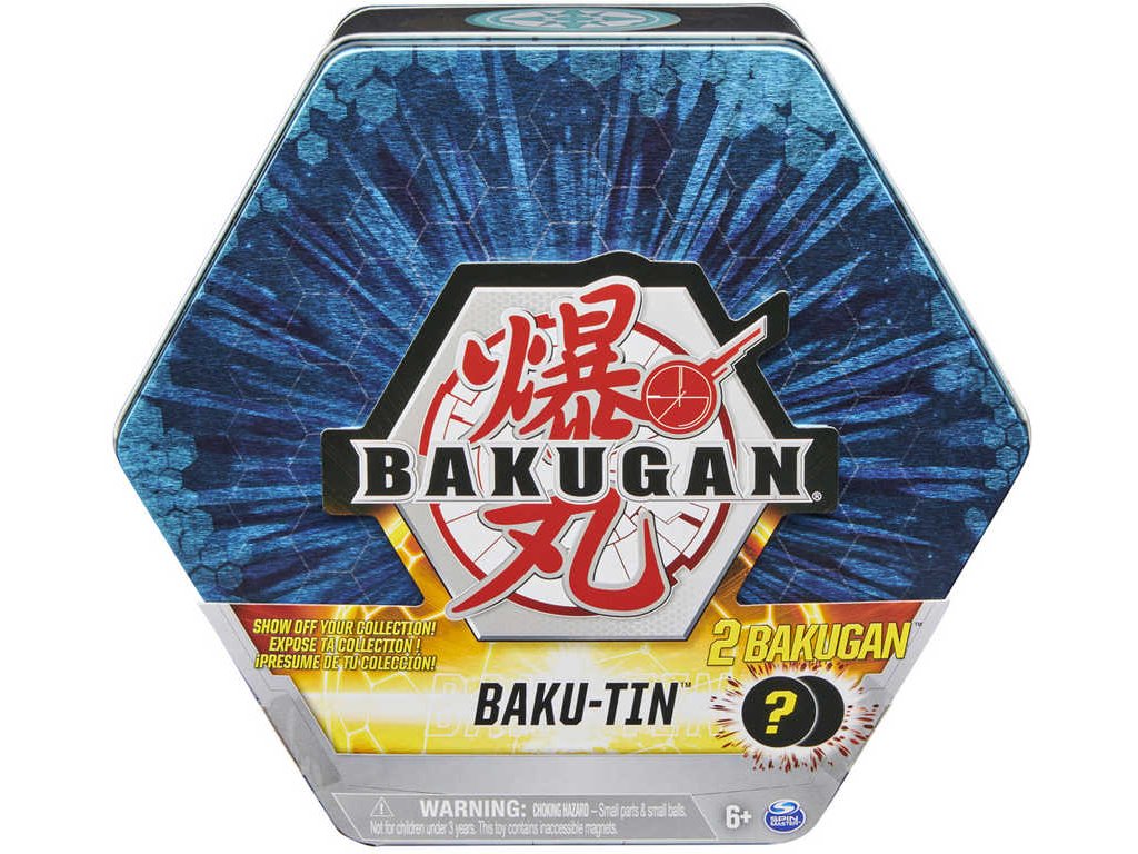 Herní set se dvěma Bakugany, Baku žetony a kartami, v praktickém plechovém boxu, ve dvou variantách provedení, který pojme až 6 Bakuganů, 2 balíčky 40ti karet a 12 Baku-žetonů.