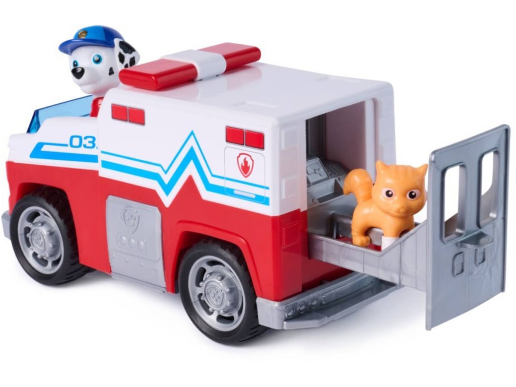 Přineste domů napínavý svět Tlapkové patroly se záchranářskou sadou Marshall – Záchranný zásah! Tato akční sada obsahuje záchranný teréňák o velikosti přibližně 15 cm se skutečně funkčními kolečky a dvě figurky, včetně Marshalla, který měří přes 5 cm, má na sobě svou záchranářskou uniformu a je připraven pustit se do akce. Děti mohou Marshalla a Kitty usadit do vozidla, natáhnout ho dozadu a vypustit do akce pro pořádnou dávku dobrodružství.