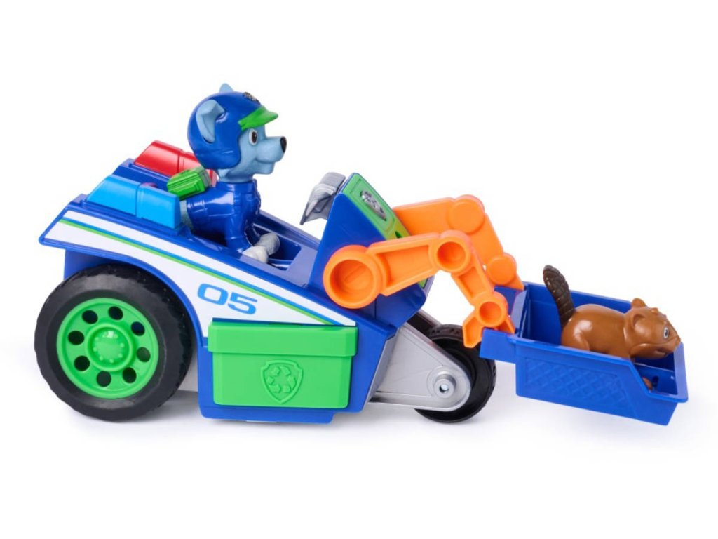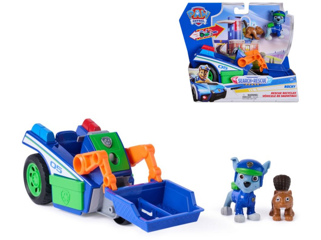 Tématické záchranářské vozidlo Paw Patrol Search and Rescue - Rocky. Velikost vozidla 15cm. Součástí 2 zvířátka.