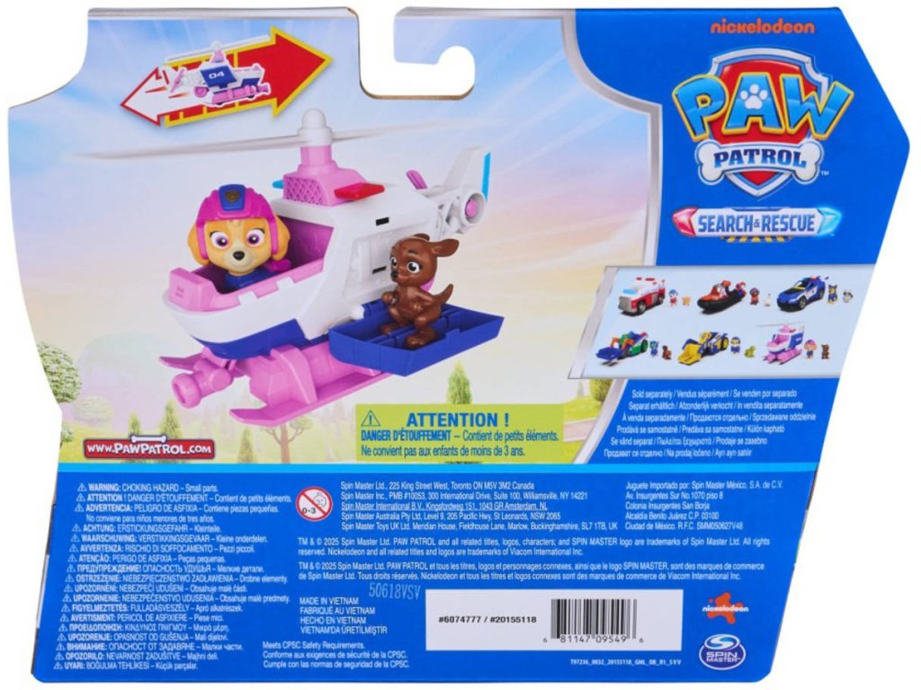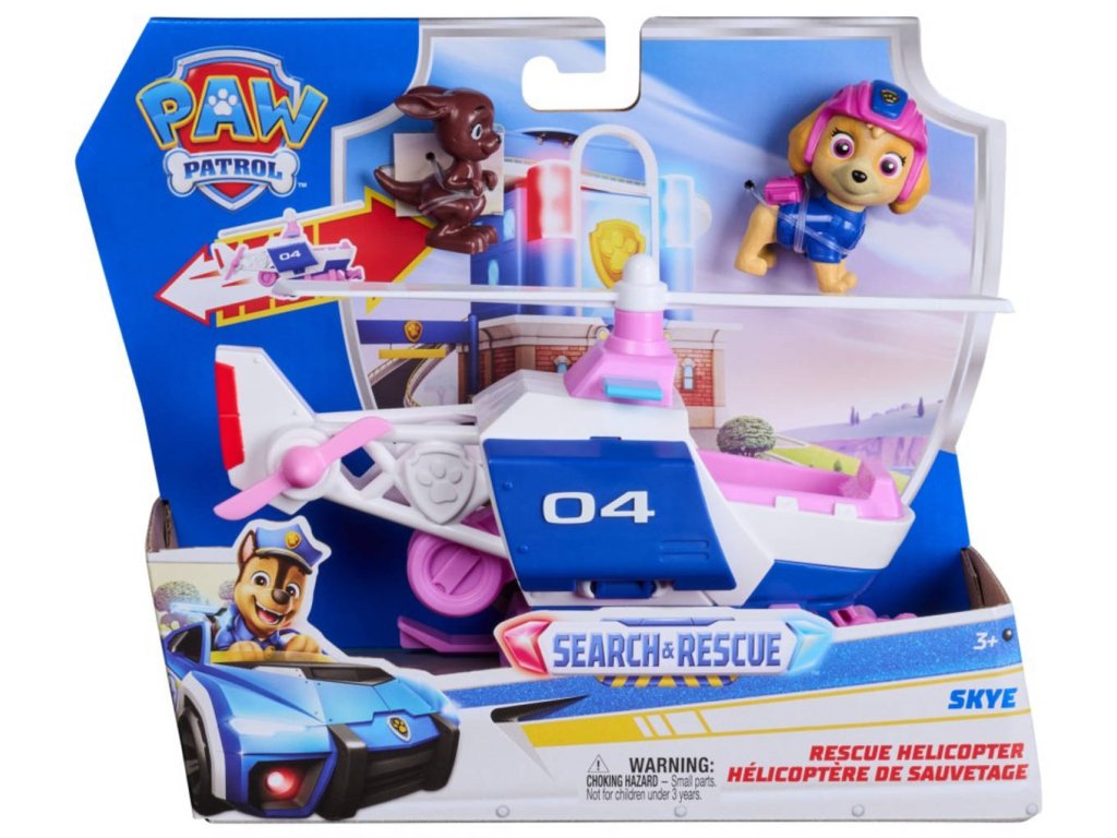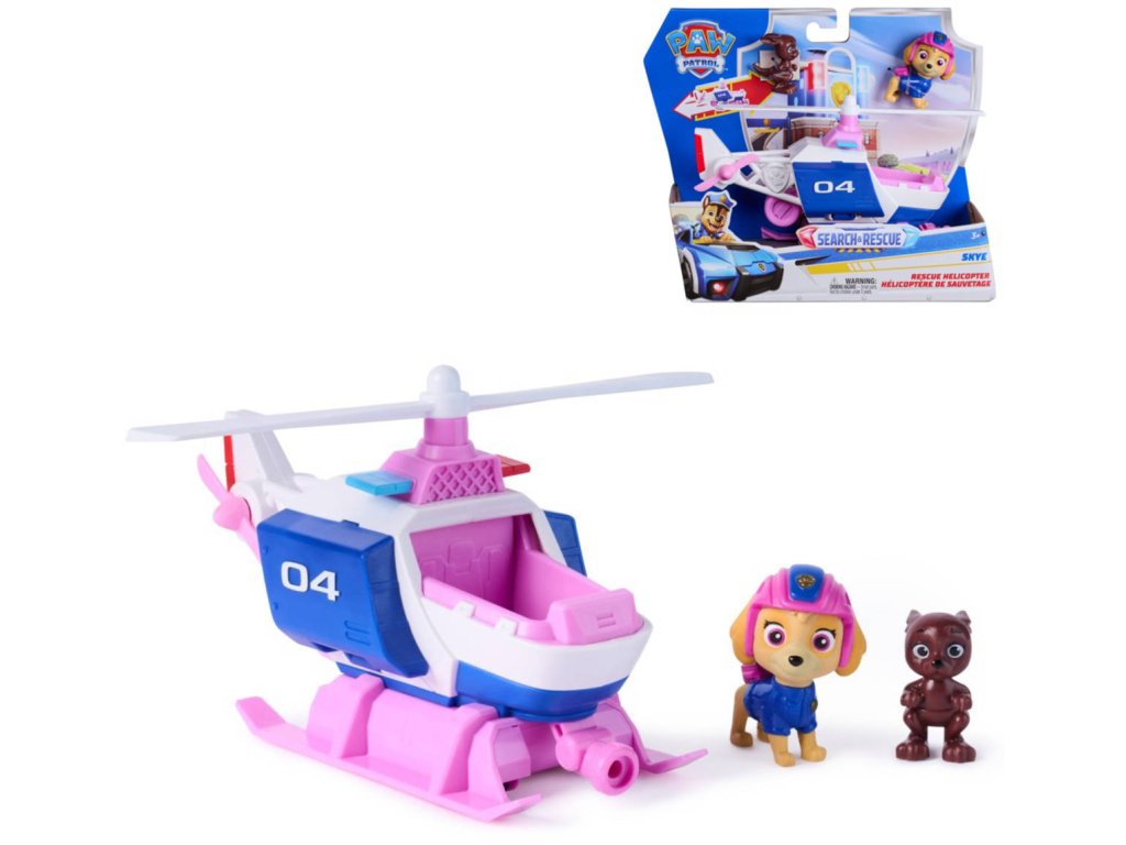 Tématické záchranářské vozidlo Paw Patrol Search and Rescue - Skye. Velikost vozidla 15cm. Součástí 2 zvířátka.