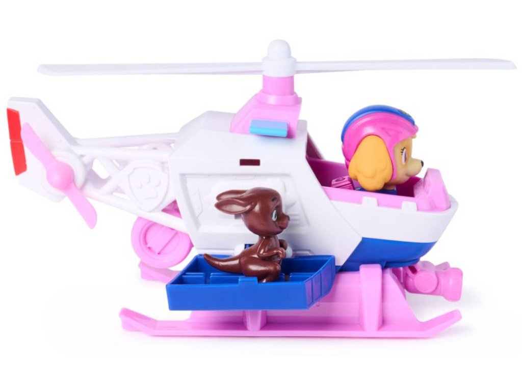 Přeneste si domů svět plný akce se záchrannou jednotkou Tlapkové patroly: Skye a její záchranná helikoptéra! Tato akční sada obsahuje helikoptéru o velikosti přibližně 15 cm se skutečně funkční vrtulí a dvě figurky, včetně Skye, která měří přes 5 cm, má na sobě svou záchranářskou uniformu a je připravena vzlétnout na další misi. Děti mohou Skye a Klokana usadit do vozidla, natáhnout ho dozadu a vypustit do akce pro pořádnou dávku dobrodružství.