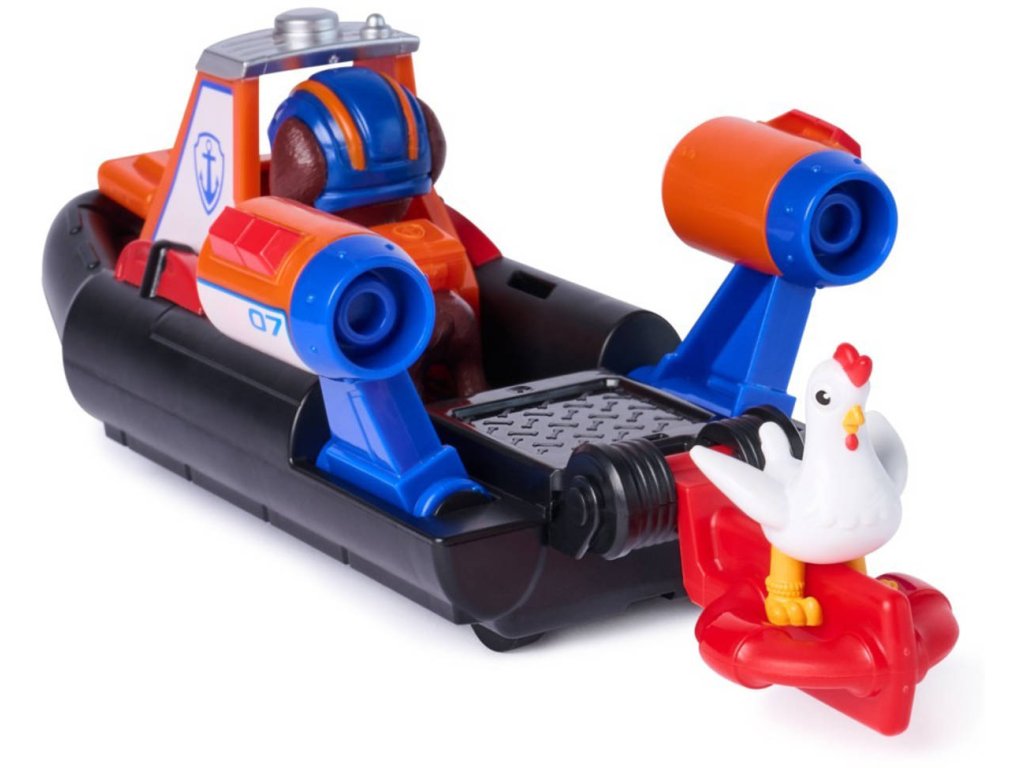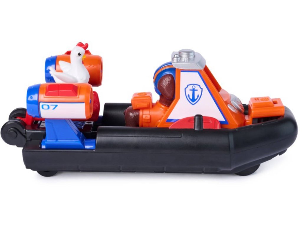 Přineste domů napínavý svět Tlapkové patroly se záchranným vznášedlem Zuma – Záchranný zásah! Tato akční sada obsahuje vodní vznášedlo o velikosti přibližně 15 cm a dvě figurky, včetně Zumy, které měří přes 5 cm, mají na sobě svou záchranářskou uniformu a jsou připraveni pustit se do nové mise. Děti mohou Zumu a Chicalettu usadit do vozidla, natáhnout ho dozadu a vypustit do akce pro pořádnou dávku dobrodružství.