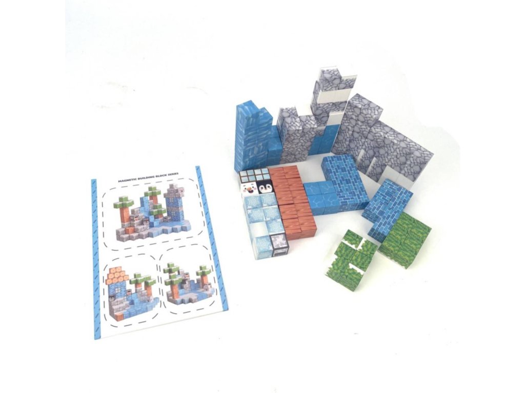 Magnetická stavebnice je kreativní sada určená pro děti od 3 let, která obsahuje celkem 124 dílků. Díky použití magnetických kostek umožňuje tato stavebnice snadné a rychlé sestavování různých tvarů a struktur, což podporuje rozvoj jemné motoriky, logického myšlení a prostorové orientace u dětí. Kostky mají různé barevné vzory, které imitují přírodní prvky jako kámen, dřevo, trávu či led, což dodává stavbám realistický vzhled a zároveň stimuluje dětskou fantazii.