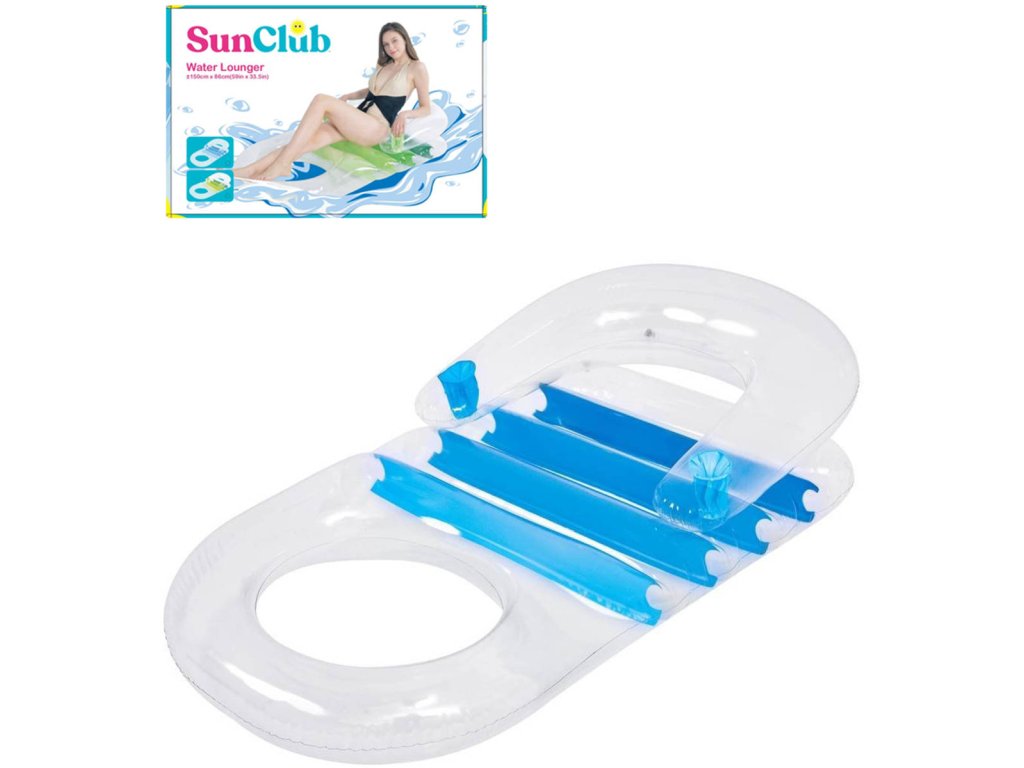 SUN CLUB Lehátko o velikosti 145 x 78cm, nafukovací transparentní matrace na vodu, s opěrkou zad, v modré barvě.