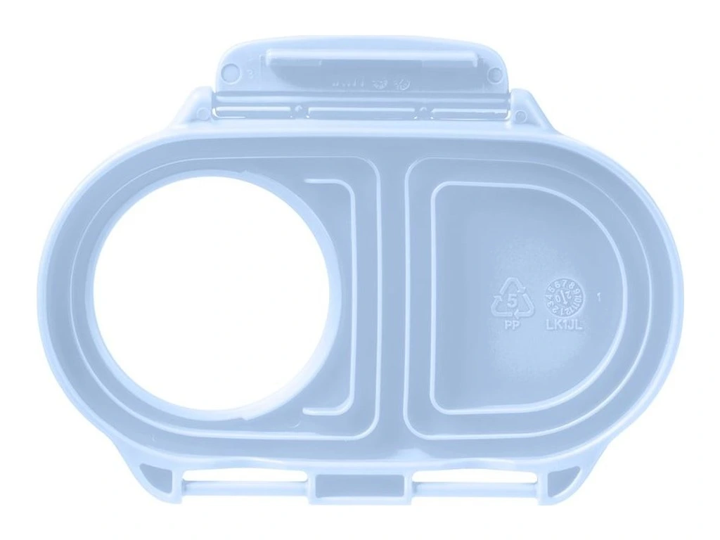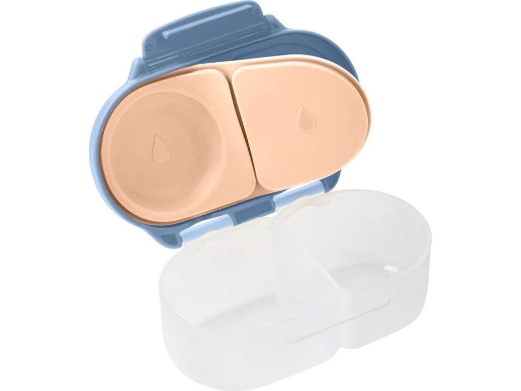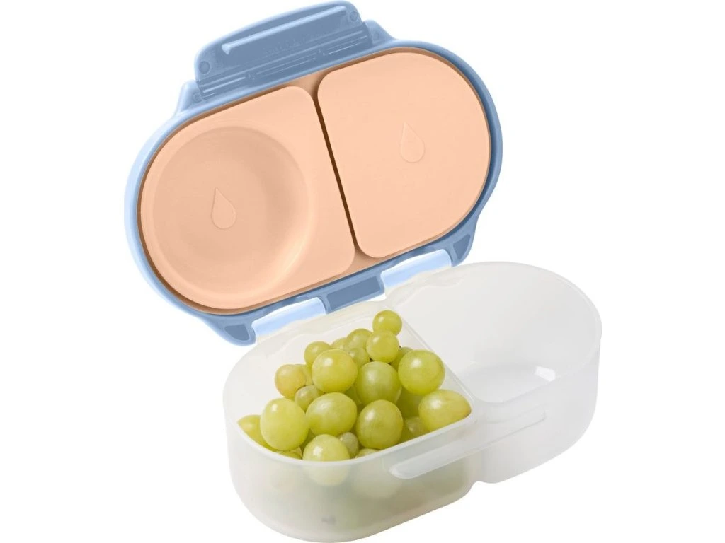 Konec rozmačkanému ovoci! Tento box je vybaven unikátním flexibilním silikonovým víčkem na jedné z přihrádek. Díky němu dovnitř pohodlně uložíte i celé menší jablko bez nutnosti krájení. Druhá oddělená přihrádka je ideální na jogurt, pyré nebo drobné krekry (upozorňujeme, že box není určen pro tekutiny).
