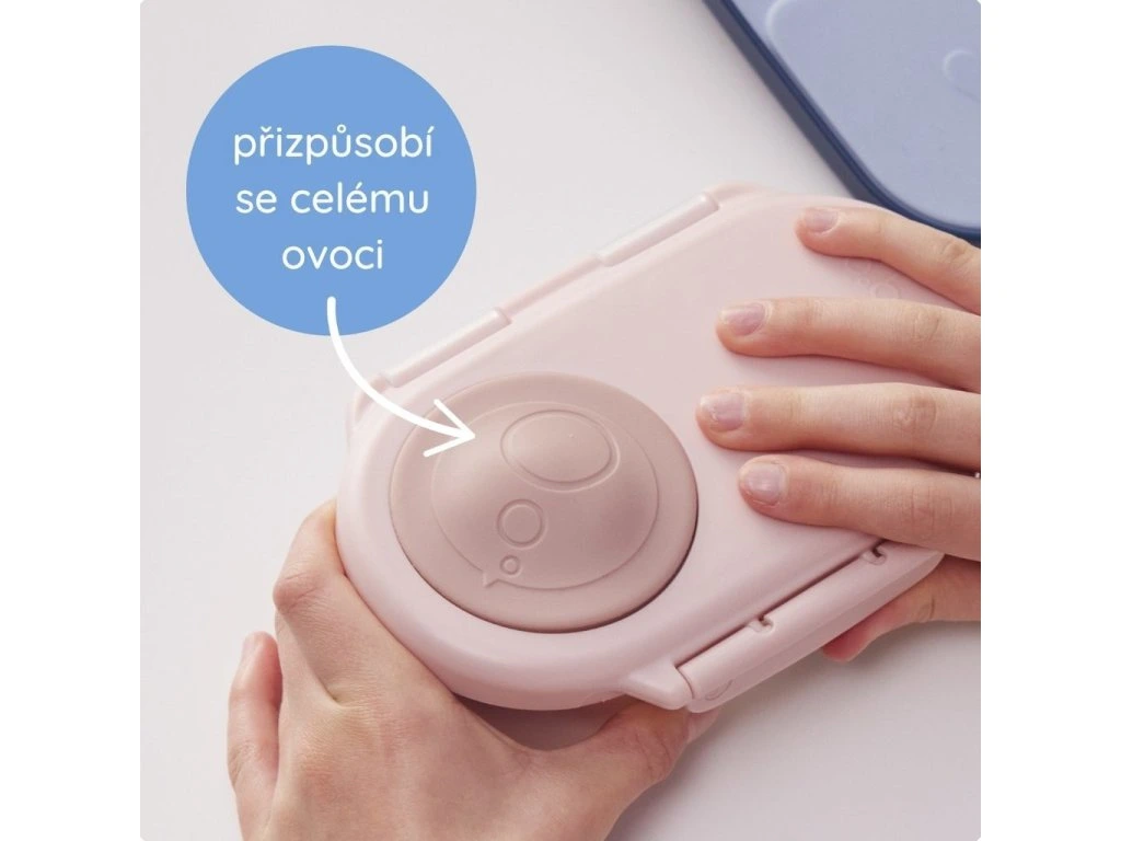 - Flexibilní silikonové víčko: Umožňuje vložit do krabičky celý kus ovoce (např. jablko), aniž byste ho museli krájet.