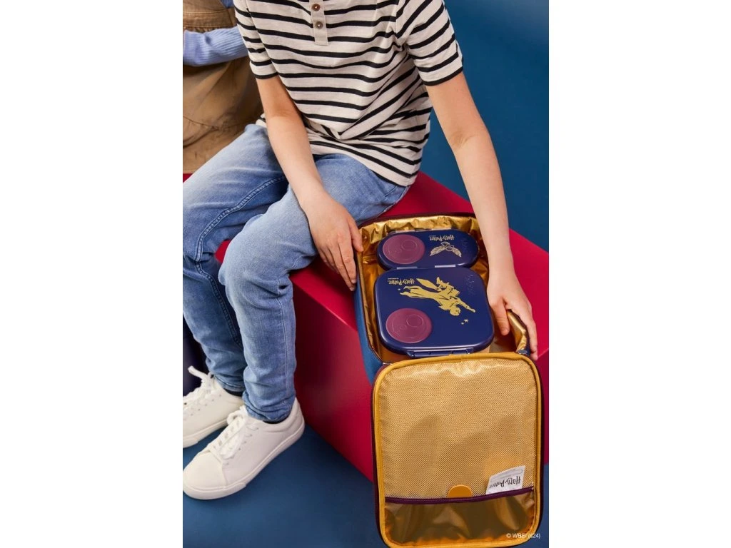 Malý svačinový box z oblíbené licenční řady s motivem Harryho Pottera je ideálním společníkem do školky, školy i na výlety. Díky kompaktním rozměrům se bez problémů vejde do každé kabelky či batohu, takže malí i velcí fanoušci kouzelnického světa mohou mít své oblíbené dobroty vždy po ruce.