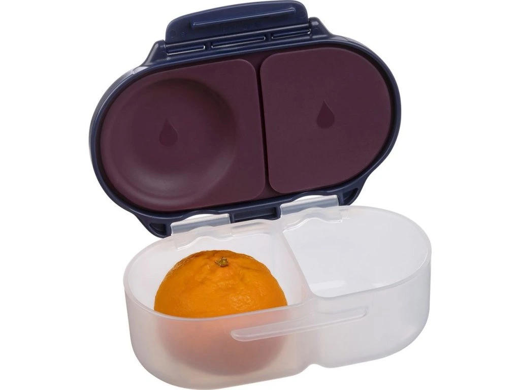 - 2 oddělené přihrádky: Ideální pro bezpečné rozdělení svačiny, například ovoce a jogurtu.