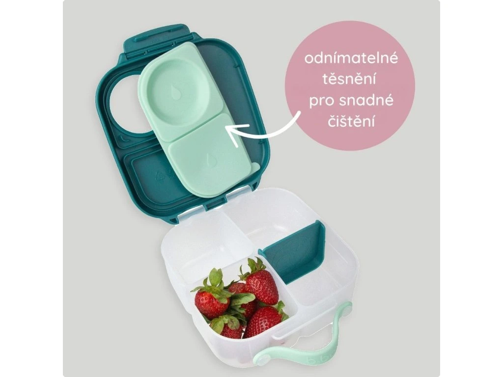 Australská značka b.box navrhla variabilní lunchbox, do kterého zabalíte nespočet různých druhů svačinek nebo celý oběd. Najdete zde oddělení pro ovoce, zeleninu nebo na čtvrtky nakrájený toast. Naprosto jedinečné zpracování víčka krabičky s flexibilním silikonovým těsněním umožní vložit do krabičky i celé jablko.