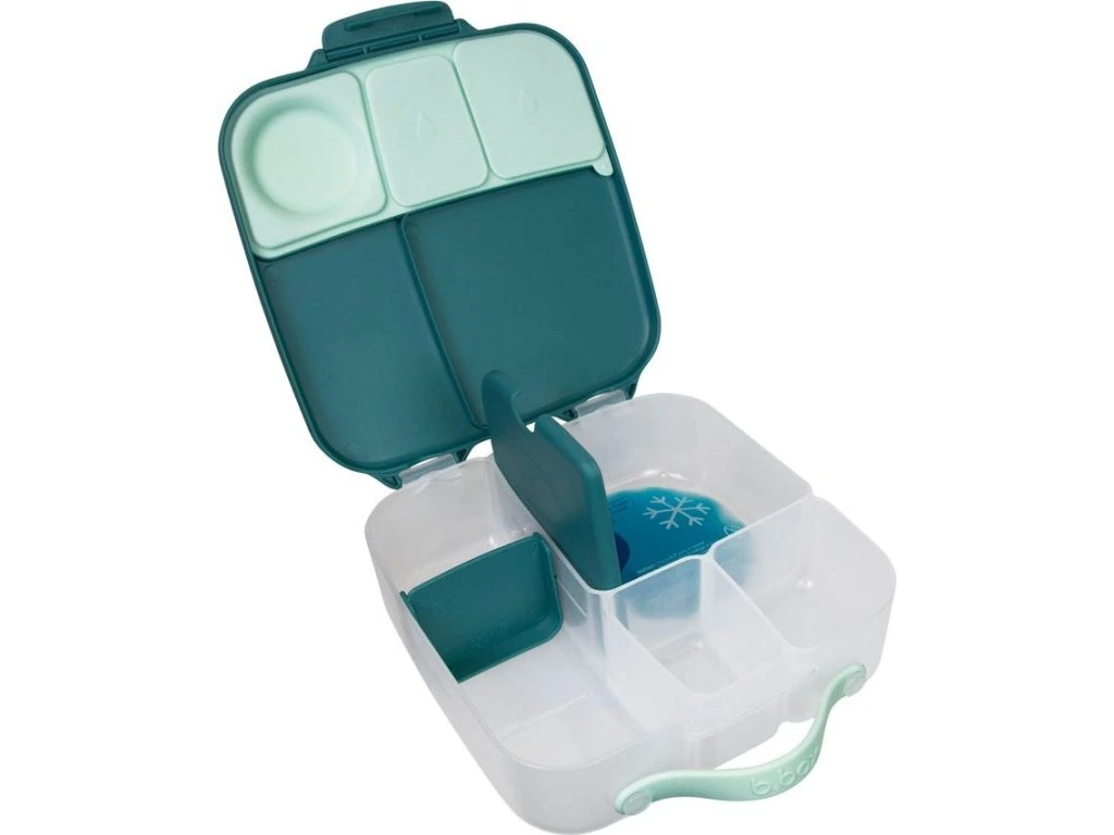 Zabalte nespočet různých druhů svačinek díky promyšlenému designu. Box nabízí oddělení pro sendvič, pod jehož pohyblivým víčkem se ukrývá chladivý polštářek pro udržení čerstvosti. Pokud víčko odstraníte, získáte velký prostor pro těstoviny či salát. Naprostým unikátem je víčko s flexibilním silikonovým těsněním, které umožňuje vložení celého jablka! Silikonové těsnění také dovoluje skladovat ovoce nebo jogurty v menších odděleních (není však určeno pro tekutiny).