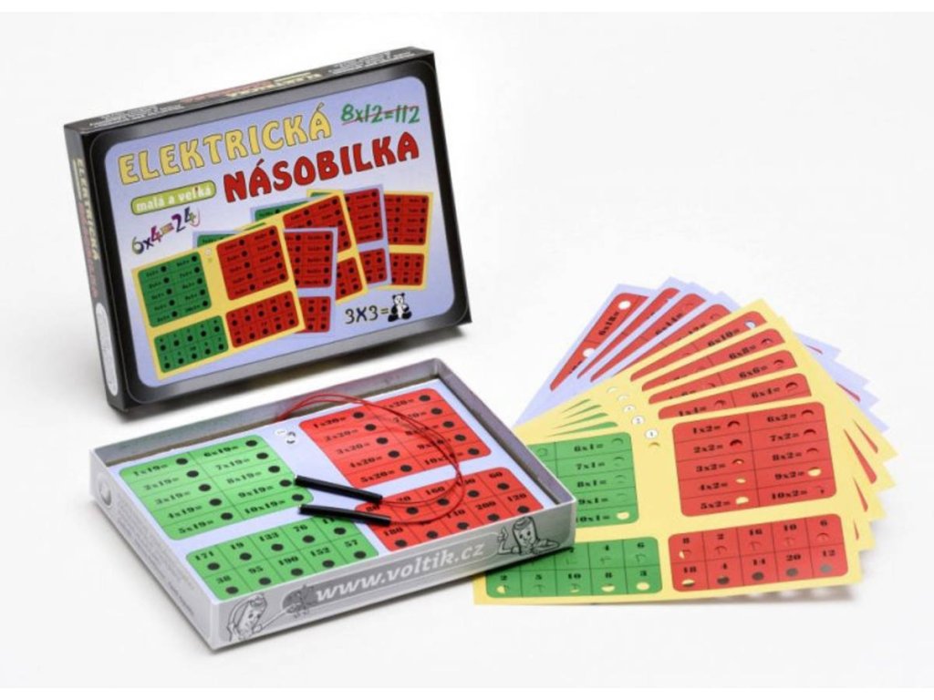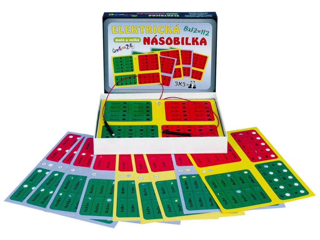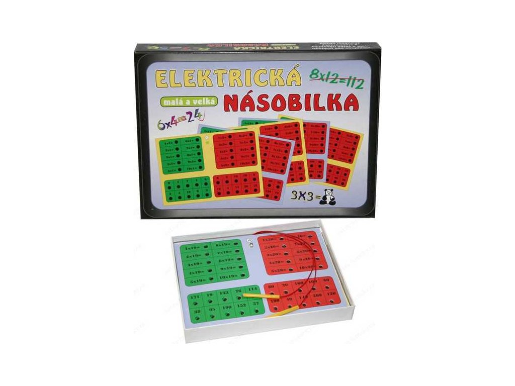 Didaktická hračka, která umožňuje samozkoušení vědomostí malé i velké násobilky. Zvolíte libovolný příklad, jeden kontakt přiložíte k příkladu a druhý k správnému výsledku. V případě správného výsledku se rozsvítí dioda. Obsahuje všech 200 příkladů malé i velké násobilky na 10 výměnných listech.