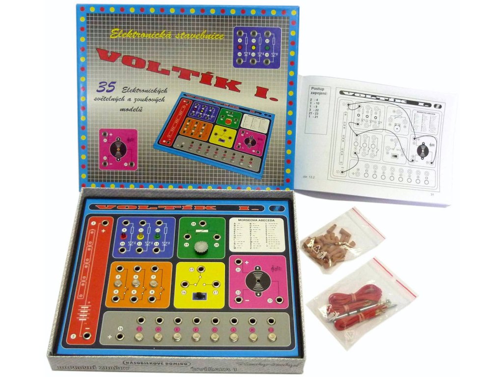 Stavebnice VOLTÍK I. je určena dětem od 6 let a umožňuje sestavit podle jednoduchých návodů nejméně 35 elektronických modelů bez pájení s barevnými světélky a tónovým bzučákem. Nevyžaduje žádné znalosti elektroniky! Modely mají různou obtížnost sestavení, od nejjednodušších, například světelný a zvonkový obvod, různé houkačky, až po měřič vlhkosti, vysílač a přijímač Morseovy abecedy, elektronický klavírek či telegraf.