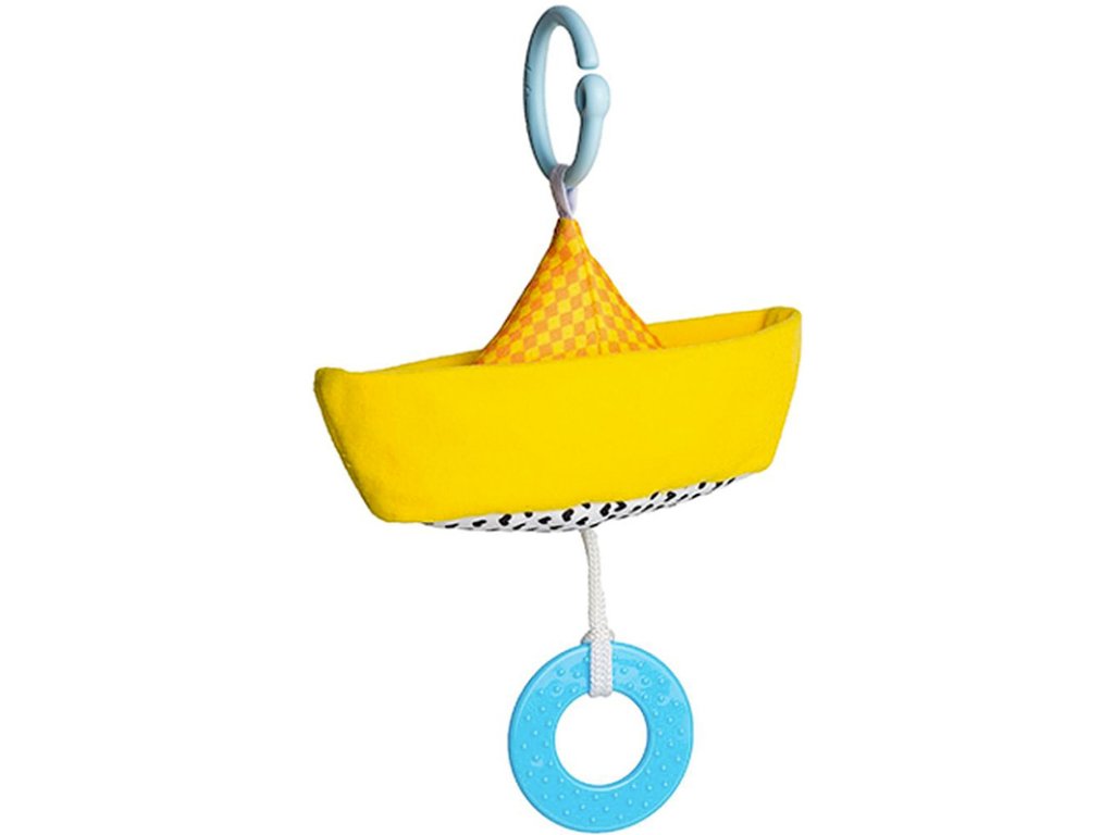 Tato prostorná polstrovaná deka s motivy života na moři je lehká a snadno přenositelná. Zavěšené hračky (cinkající velryba, lodička s kousátkem, chrasticí králíček a velké bezpečné zrcátko) lze na hrazdě