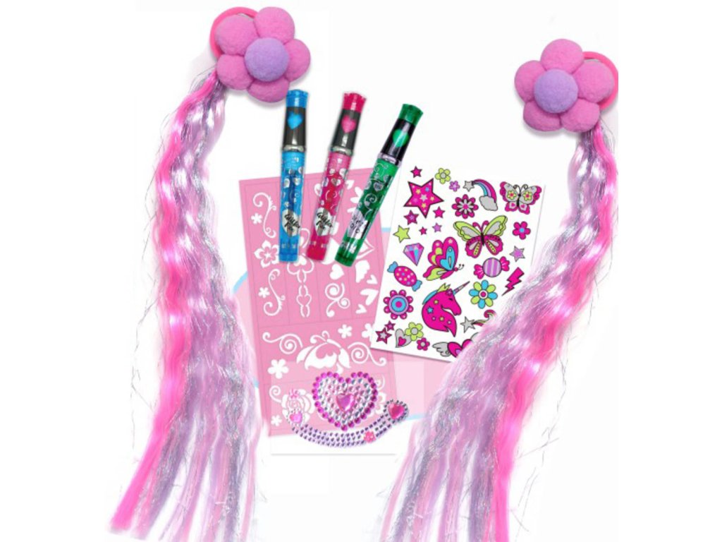 Tetovací studio holčičí kreativní set 3 tetovací pera se šablonami a copánky