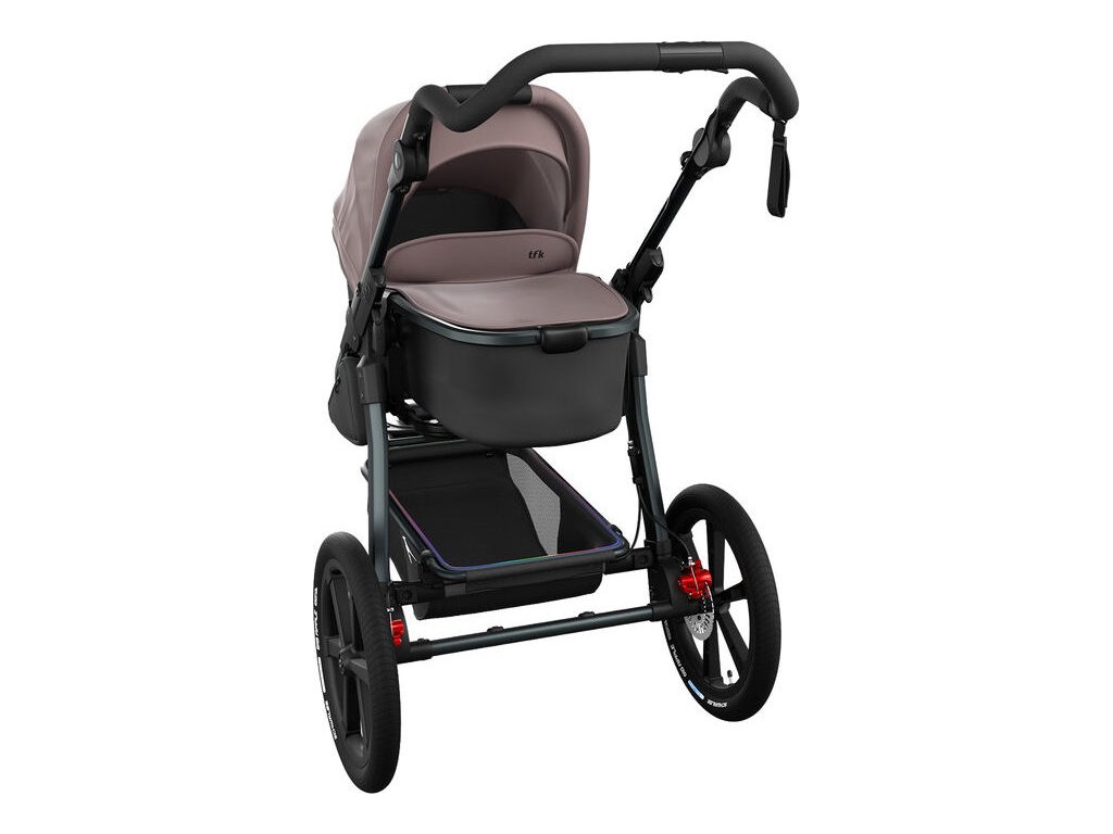 - Spolehlivost v každém terénu: TFK kočárky jsou navrženy tak, aby zvládly i náročné podmínky, jako je lesní cesta, štěrk nebo sníh.
