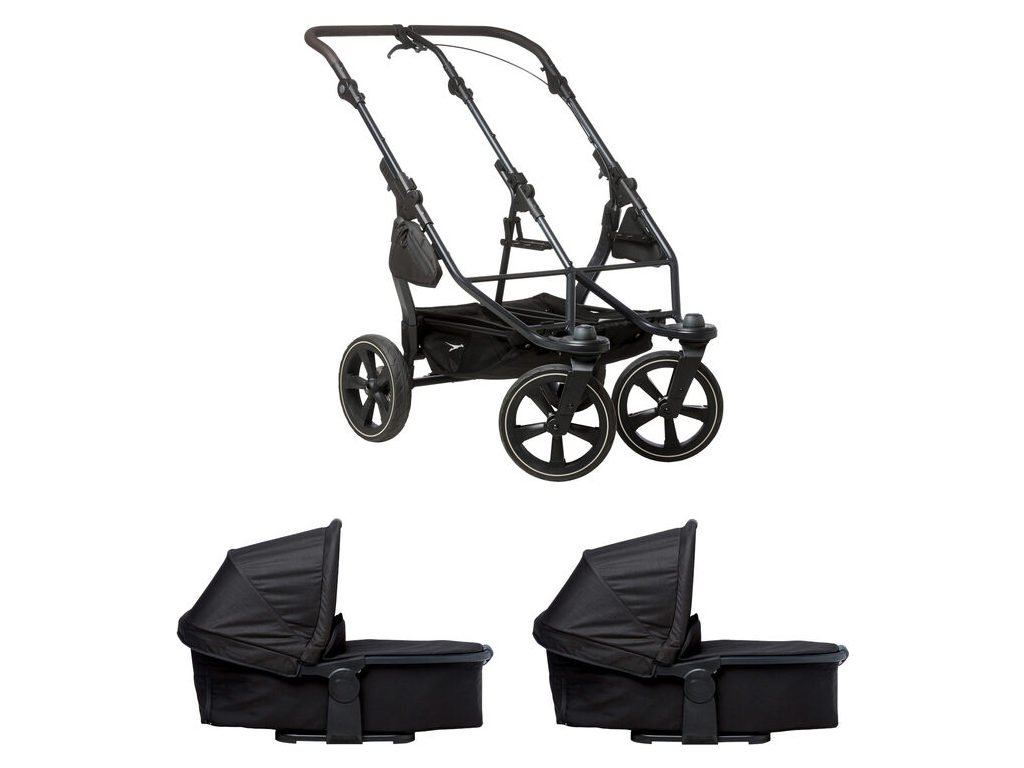 Konstrukce kočárku duo2 je větší, lehčí, odpruženější, lépe ovladatelná. Snadno na ni nacvaknete nový model hluboké korby duo2 combi, nebo sportovní sezení stroller seats duo2. Lze mít separátně dvě korby, nebo dva sedáky pro dvojčátka, anebo kombinaci korba a sedák pro sourozence.