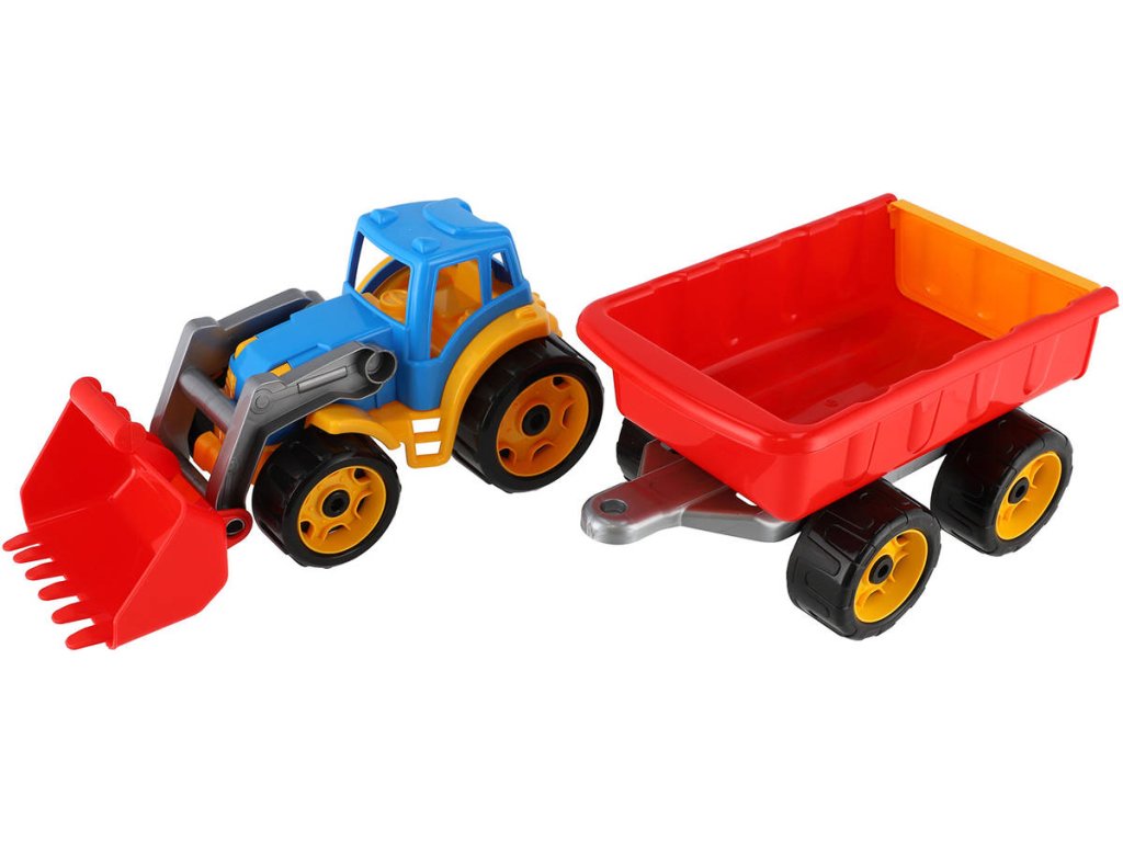 Barevný traktor s vlečkou a čelním nakladačem, je vhodný pro každého malého zemědělce a je vyroben z kvalitního a odolného plastu. Užijte si spoustu zábavy s tímto traktorem také
