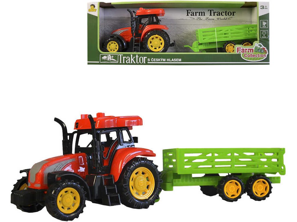 Červený traktor se zelenou vlečkou z plastu, pro všechny malé farmáře a zemědělce. Hračka na baterie se zvukem. 4 české věty + zvuk motoru. Baleno v krabici.