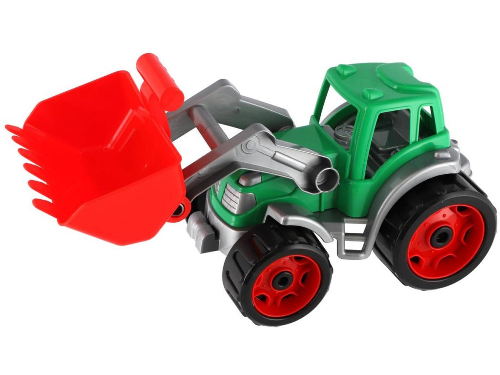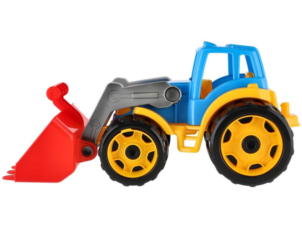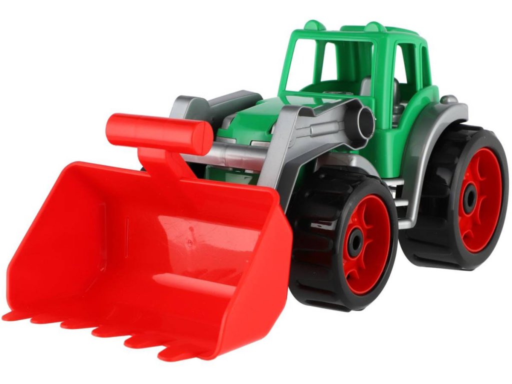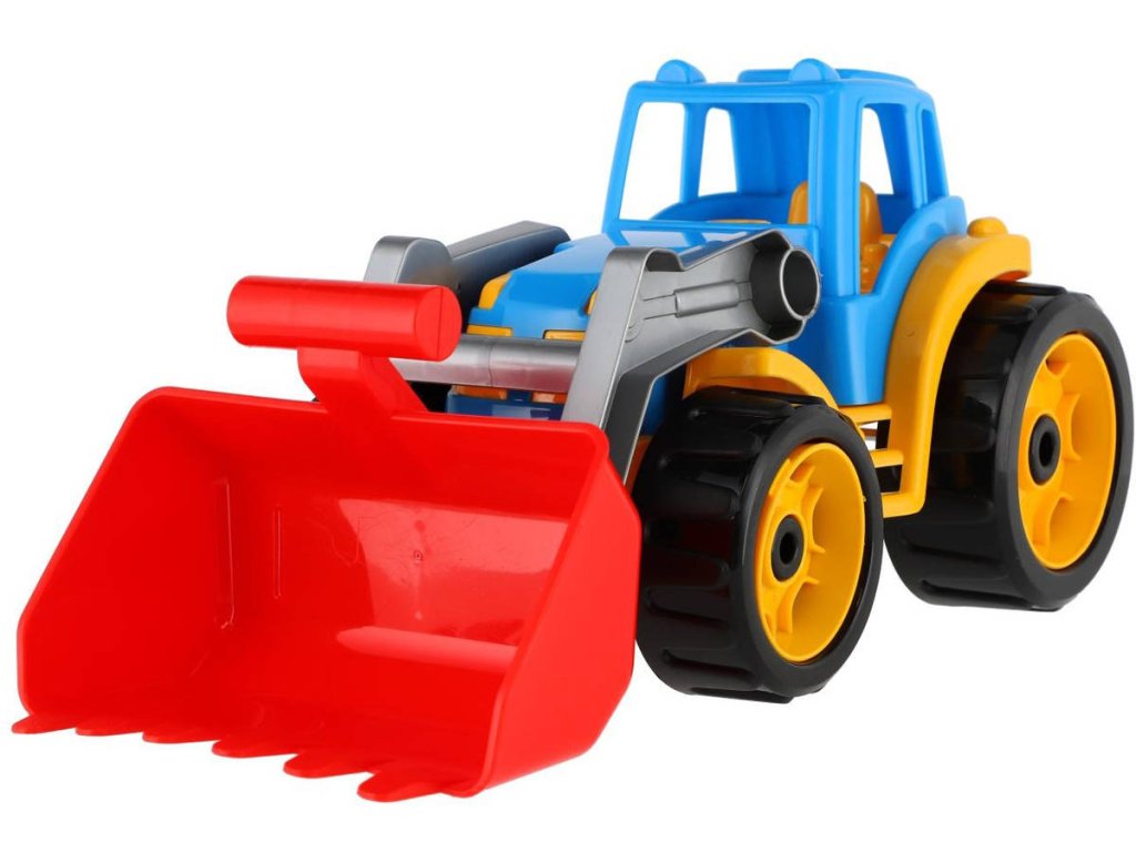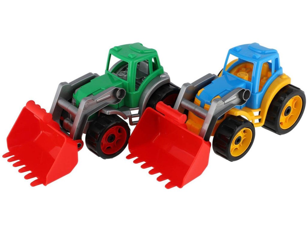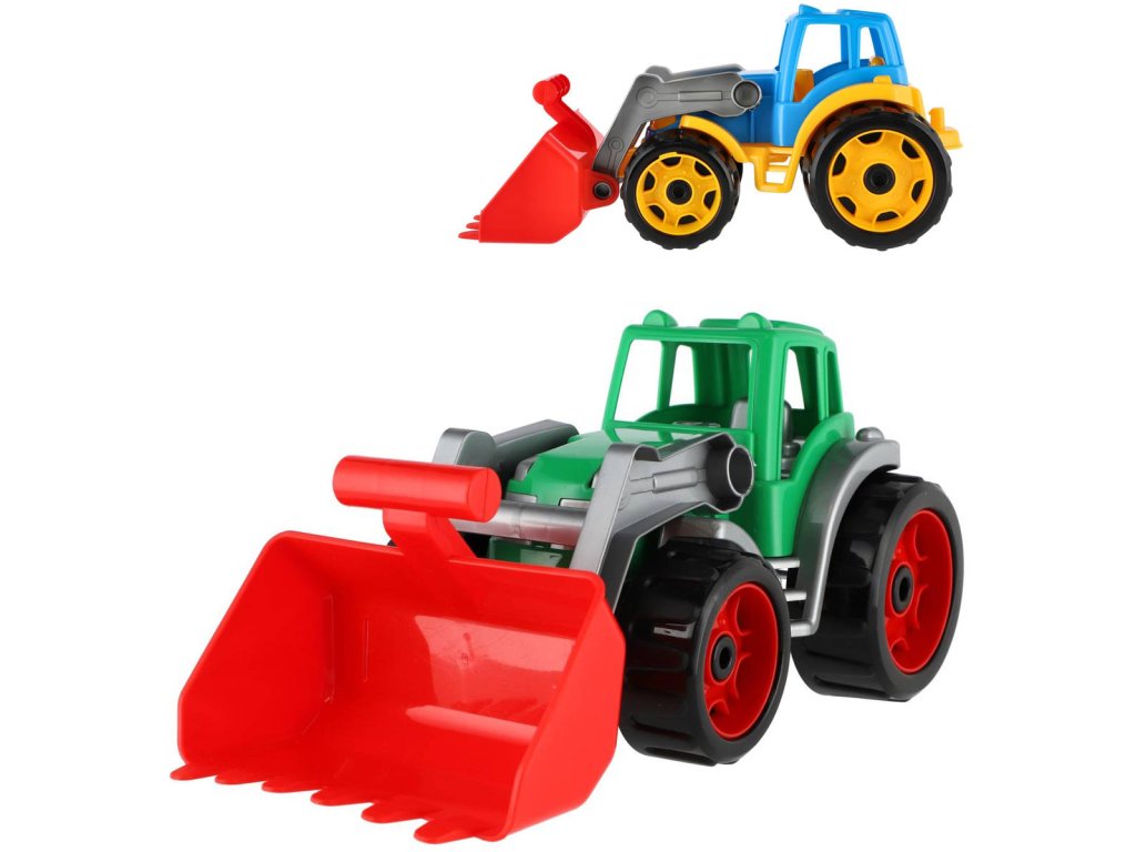 Traktor se lžící o velikosti 37cm, barevný nakladač na písek, baby bagr na volný chod, vhodný i pro nejmenší děti, hračka ve dvou barevných variantách.