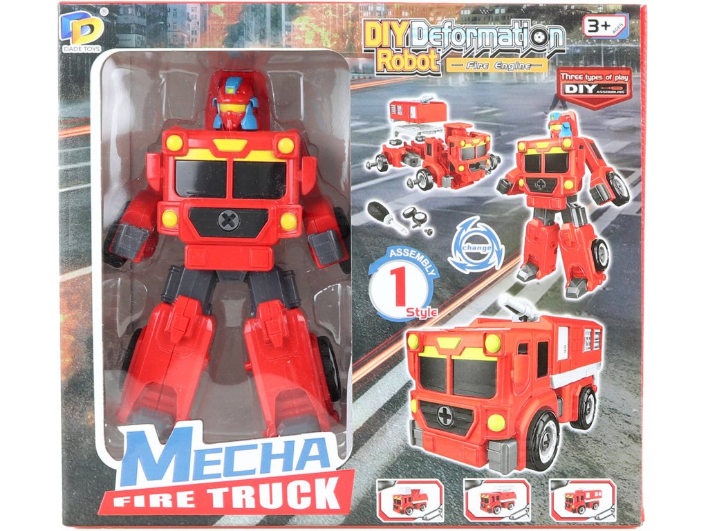 Skládací plastový šroubovací transrobot s přeměnou o velikosti 16cm. Robot se dá přeměnit v hasičské auto 2in1. Tento montážní set obsahuje další doplňky a šroubovák k sestavení.