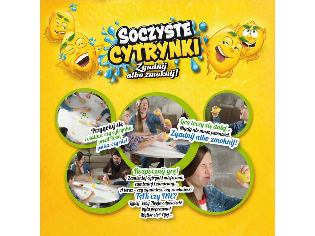 Bláznivá hra se stříkajícími citróny - hra na rychlou reakci a postřeh. Hra při které nezůstane jediný hráč suchý. Zábavná hra pro celou rodinu, kde si nikdy nemůžete být jistí. V hlavní roli je hádání. Když se spletete čeká vás studená citrónová sprška.