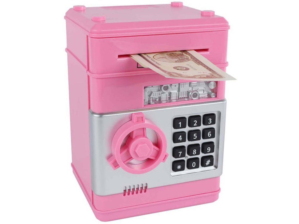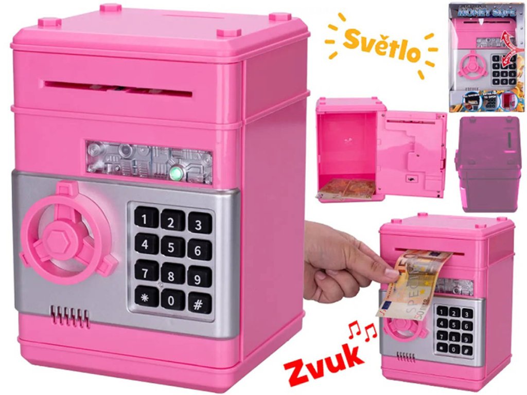 Udržuji své cennosti v bezpečí – s touhle skvělou kasičkou - trezorem. Masivní (ale lehký) plastový trezor o výšce cca 19,5cm nabízí možnost nastavit si vlastní tajný kód, který ochrání tvé úspory před zvědavýma očima. Nejen to – když zadáš kód, uslyšíš zvuk a uvidíš světlo, takže otevírání je zábava. Ideální pro děti od 3 let, které se tak snadno naučí šetřit.
