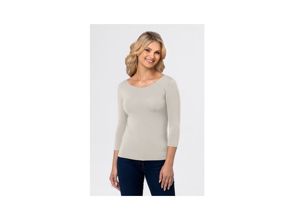 Dámské střihově jednoduché tričko s 3/4 rukávem a kulatým výstřihem. Vyrobeno z pohodlného a příjemného materiálu vhodné na každodenní nošení. Vyrábí se v široké škále barev. Baleno v dekorativní krabičce.