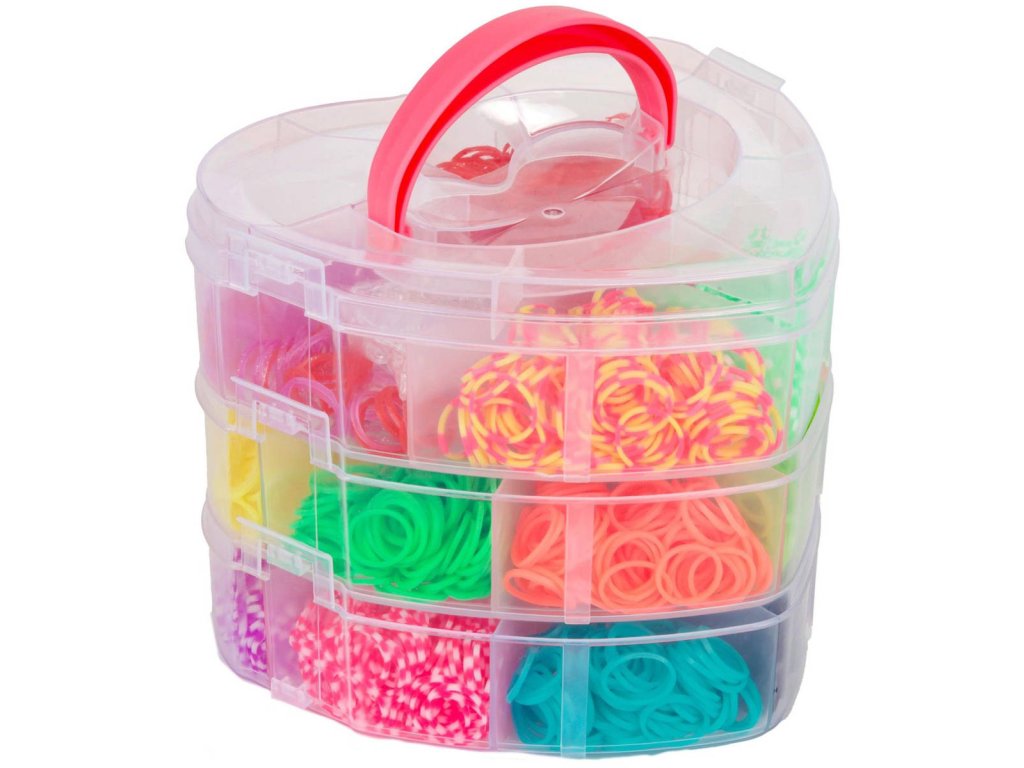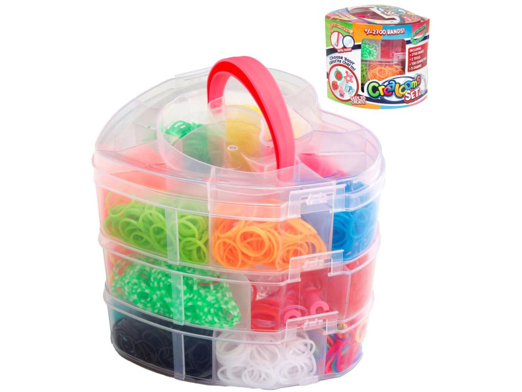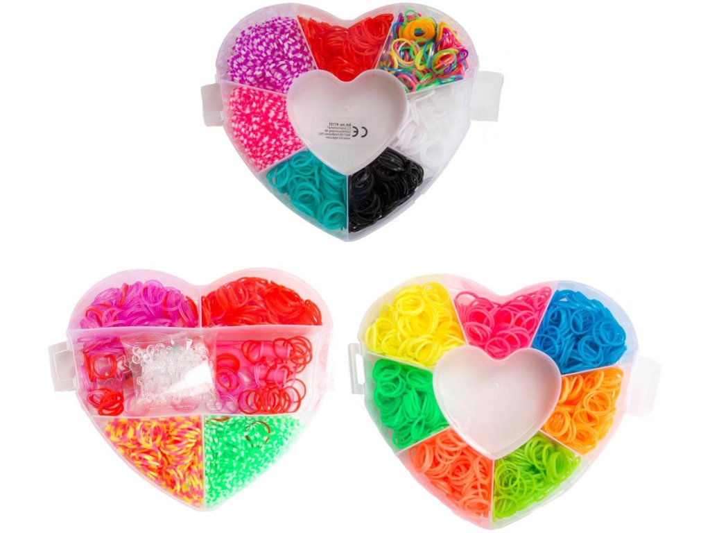 Barevné gumičky Loom Bands, velké balení - 2700ks v přenosném boxu ve tvaru srdce, součástí 2 nástroje, přívěšky a zakončovací svorky. Udělej si náramek!