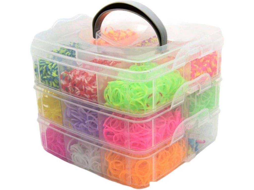 Tyto barevné zaplétací gumičky budou jistě skvělou zábavou na několik hodin. Balení v plastové krabičce obsahuje 3000ks gumiček různých barev, dva plastové háčky, mini pletací stav a svorky na zakončení. Zabavte a
