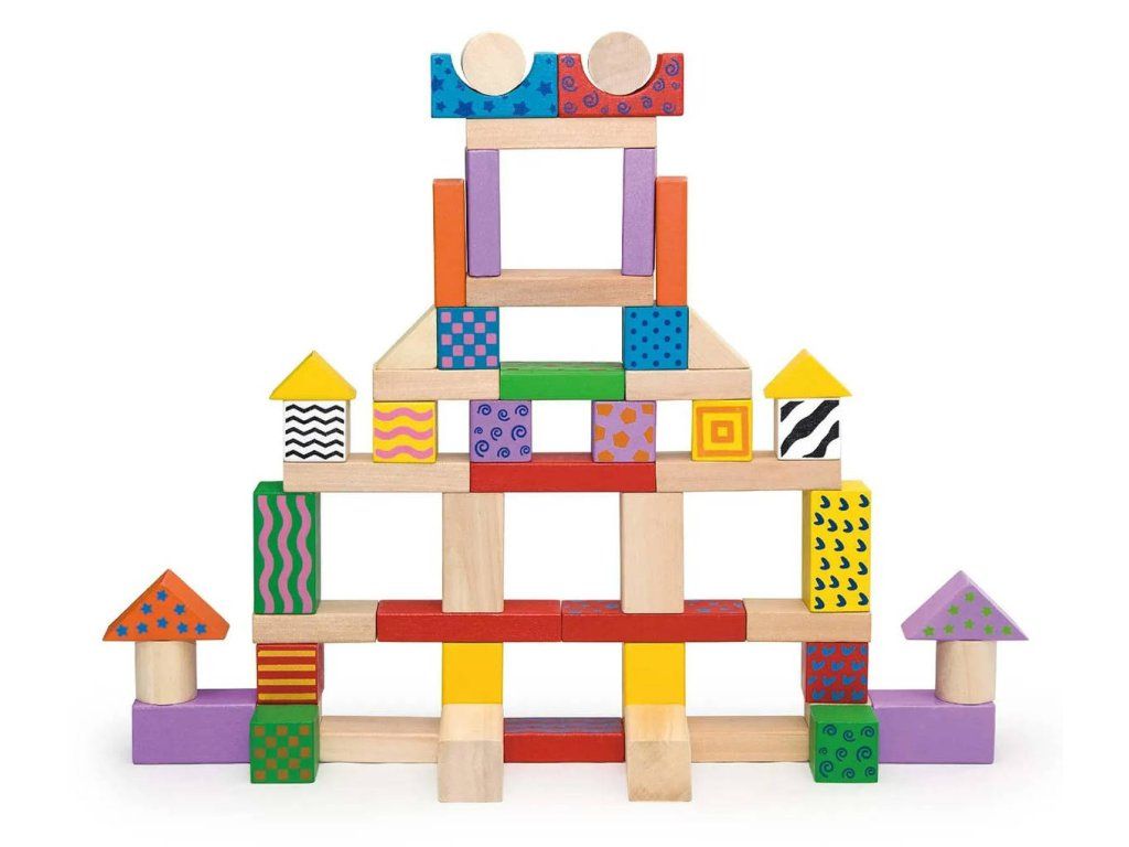 Kostky jsou snadno uchopitelné pro malé dětské ruce. Tyto pestrobarevné klasické dřevěné kostky podporují kreativitu a rozvíjejí základní motorické dovednosti. Stavebnice obsahuje kostky z přírodního dřeva, s ručně malovanými vzory. Tento set umožňuje dětem stavět cokoli, co si dokážou představit. Součástí sady je také leták s nápady na stavění. Sada je uložena v praktickém úložném válci s víkem a madlem pro snadné přenášení, takže je ideální i na hraní na cestách. Když se nepoužívají, lze kostky přehledně uklidit.