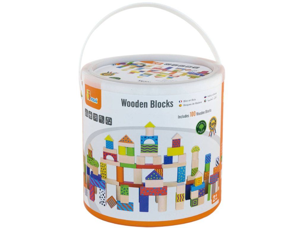 VIGA DŘEVO Baby kostky stavebnice 100ks v kyblíku *DŘEVĚNÉ HRAČKY*
