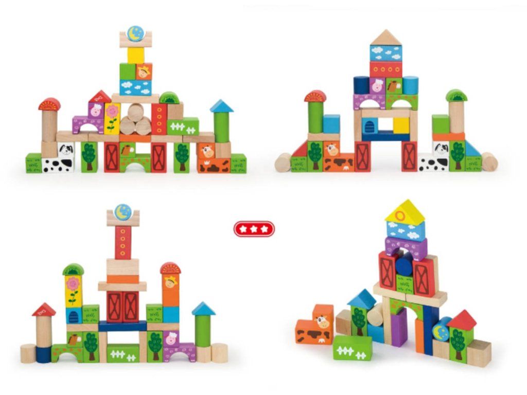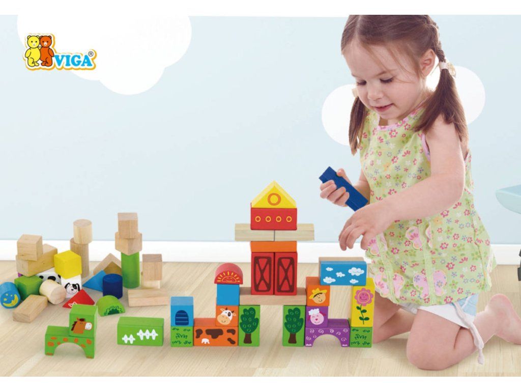 VIGA DŘEVO Baby stavebnice Farma kostky 50ks v kyblíku *DŘEVĚNÉ HRAČKY*