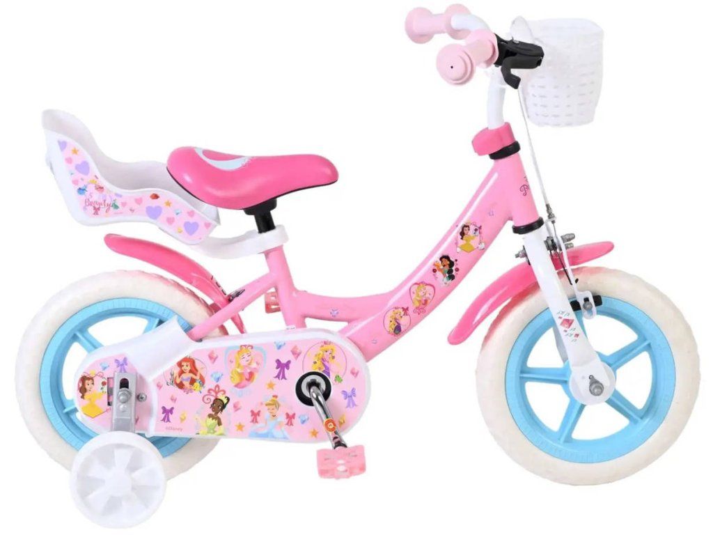 Pro každou malou princeznu je učení jízdy na kole velkým dobrodružstvím! Dětské kolo Volare Disney Princess 12" spojuje bezpečnost, pohodlí a pohádkový design s oblíbenými Disney princeznami. Díky stabilní konstrukci a praktické výbavě je ideální jako první skutečné kolo pro začínající cyklistky. Bezpečnost je na prvním místě — kolo je vybaveno přední ruční brzdou a zadní protišlapnou brzdou, takže se dítě snadno naučí správně brzdit. Odnímatelná balanční kolečka pomáhají udržet stabilitu při prvních jízdách a lze je později jednoduše sundat. Pohodlí při jízdě zajišťuje měkké sedlo a výškově nastavitelné sedátko i řídítka, díky kterým kolo roste spolu s dítětem. Praktický přední košík a zadní sedačka pro panenku umožní malé princezně vzít si své oblíbené věci na každé dobrodružství.