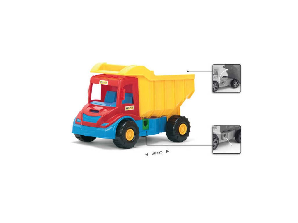 Auto nákladní sklápeč. Velikost 38 x 23,5 x 20 cm.