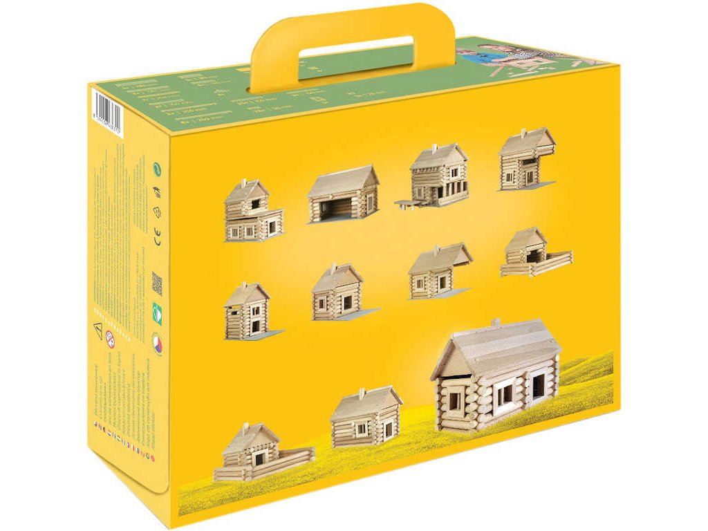 navzájem kompatibilní a umožňují postavit desítky variant staveb. Okna a dveře, slepené z masivních profilů, se vkládají do stěn staveb. Jsou uloženy v pevných kartónových krabicích, které zajišťují jejich