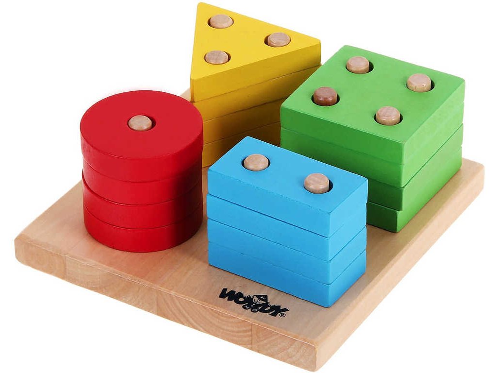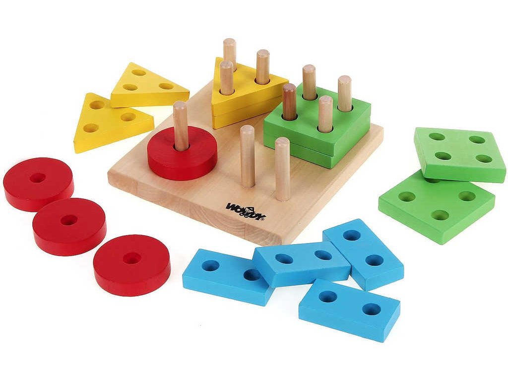 Logická hra pro nejmenší, kde je úkolem dítěte, podle tvaru, barvy a počtu kolíků, navléknout a umístit dílek na správné místo. Baleno v krabici.