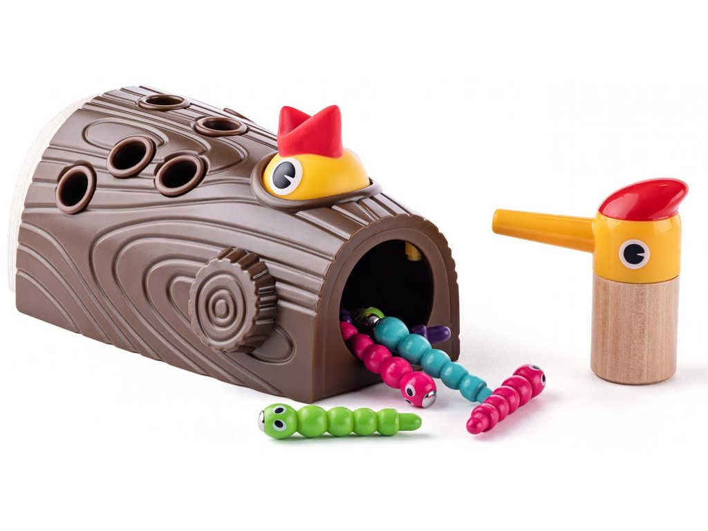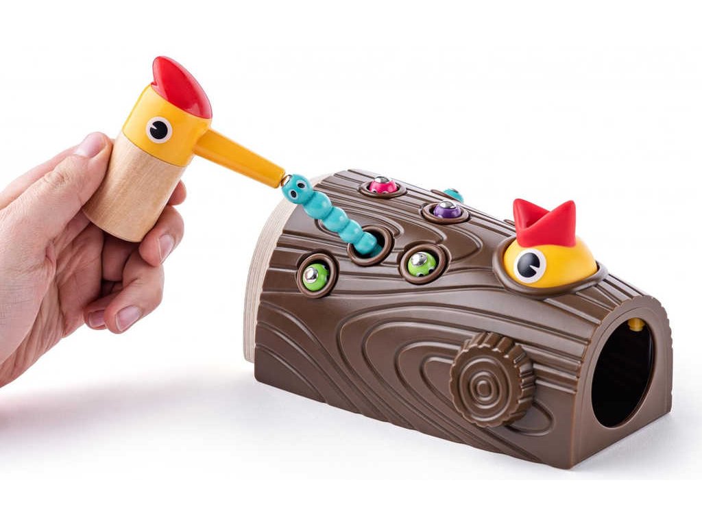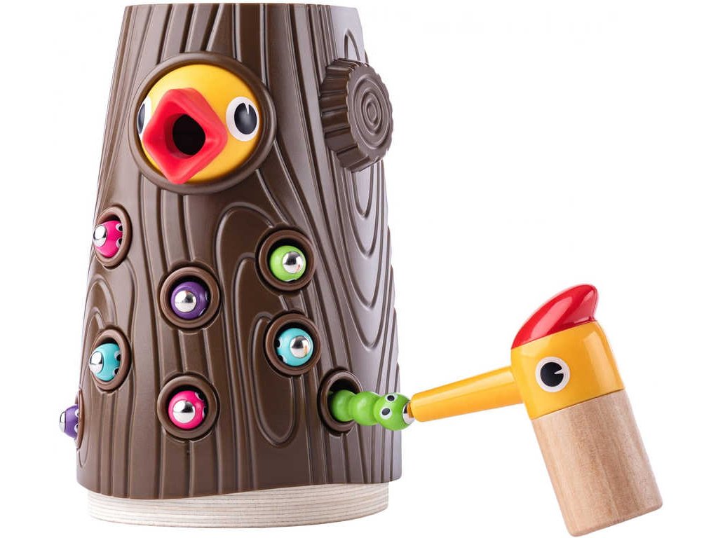 WOODY DŘEVO Datel baby hra magnetická vytahování červíků