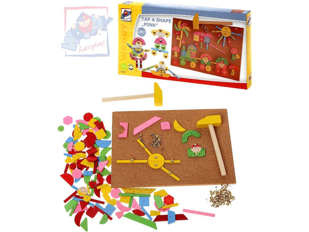 Dřevěná zatloukací hra rozvíjející manuální zručnosti dítěte. Dítě si může pomocí přiložených tvarů vymodelovat jakýkoli obrázek, všechny tvary musí spojit s deskou pomocí přibíjecích hřebíčků s kulatou hlavou. Demontáž je velmi snadná.