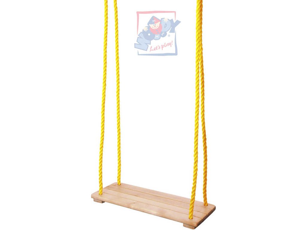 Klasická jednoduchá dřevěná houpačka na zavěšení - prkénko. Houpačka bez podpěrek umožňuje větším děten více pohybu a volnosti a způsobů houpání. Délka provazů včetně houpačky: 195cm - nastavitelná délka lana. Pro závěšení na bezpečnostní (nejlépe točivé) háky.