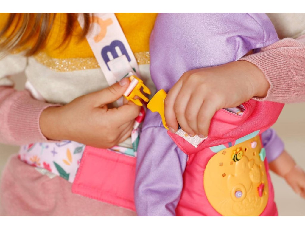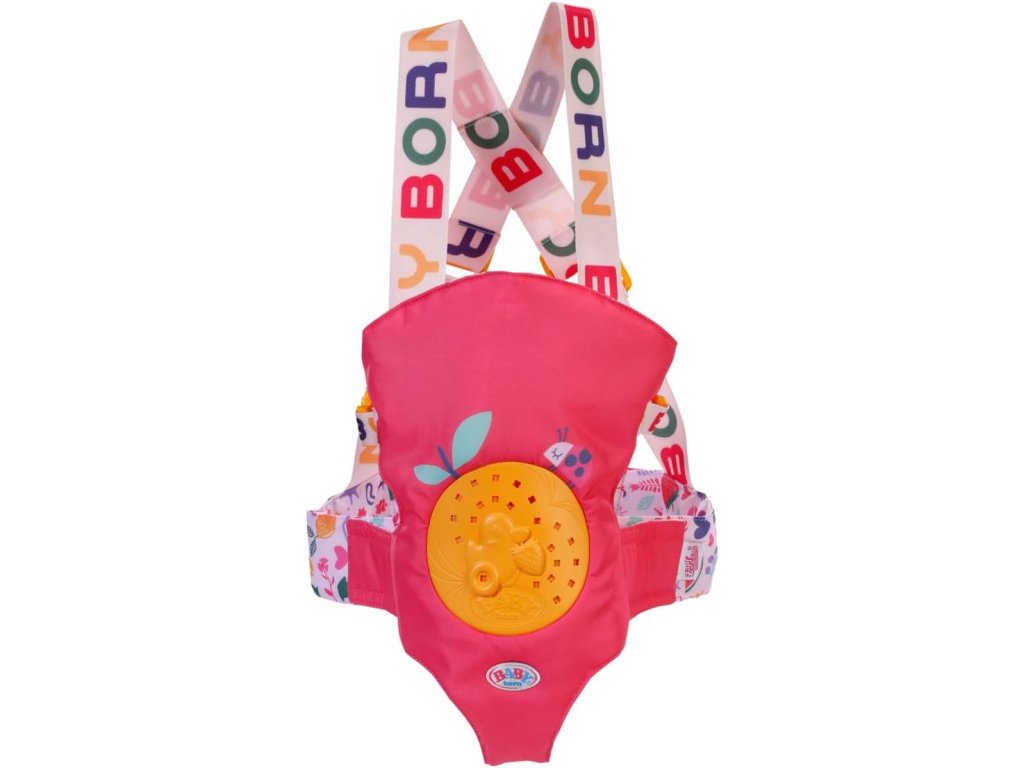 ZAPF Baby Born klokanka - nosítko s ozdobami pro panenku miminko o velikosti 36cm nebo 43cm. Součástí nacvakávací ozdoby. Nastavitelné popruhy.