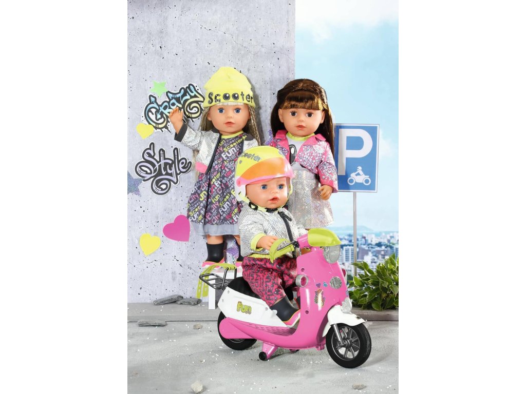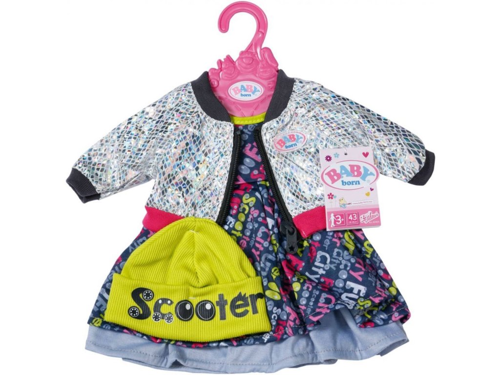 ZAPF Baby Born oblečení na skútr, obleček pro panenku mininko o velikosti 43cm. Součástí jsou šaty, bunda a čepice.
