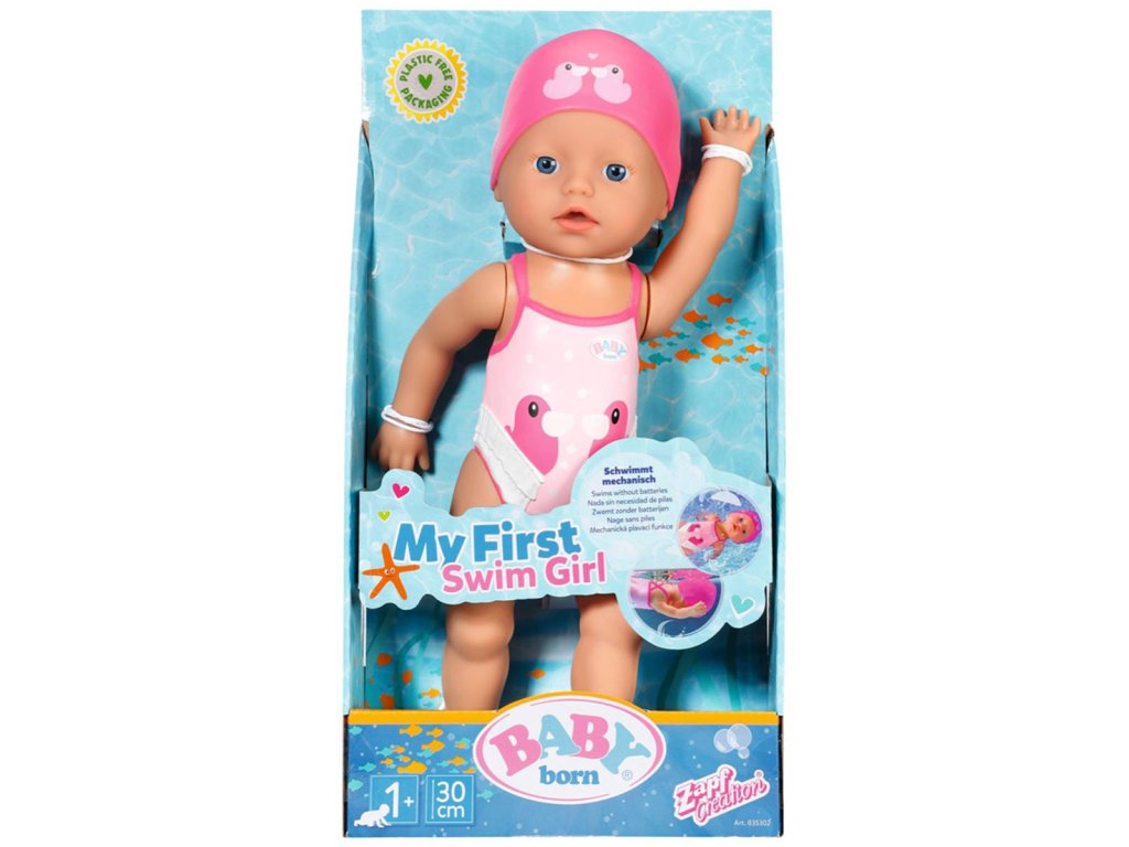 ZAPF BABY BORN My First panenka holčička - plaváček, pro nejmenší děti, velikost 30cm, plave ve vodě, po otočení ručiček plave kraula a motýlka, vodotěsný materiál, Eko obal.
