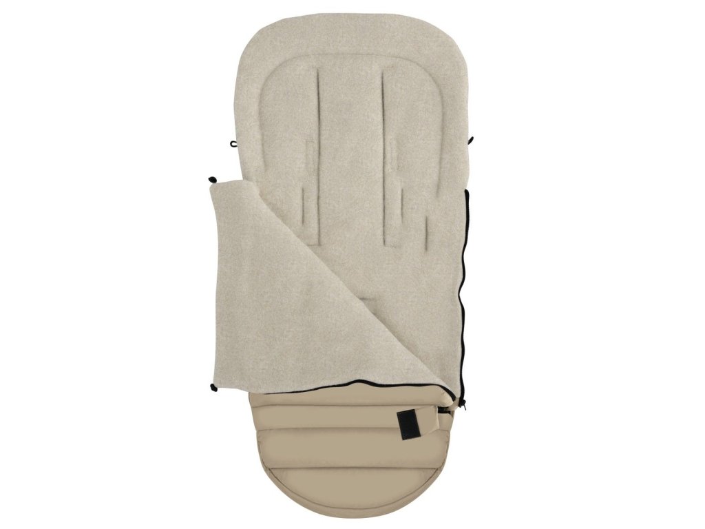 Béžový fusak do kočárku Wintertime je navržen pro maximální funkčnost a pohodlí. Jeho vnitřní stranu tvoří 100% přírodní ovčí vlna, která dokonale izoluje a zajišťuje přirozenou termoregulaci. Díky tomu fusak udržuje optimální teplotu i v silném mrazu a zároveň zabraňuje přehřívání během teplejších dnů.