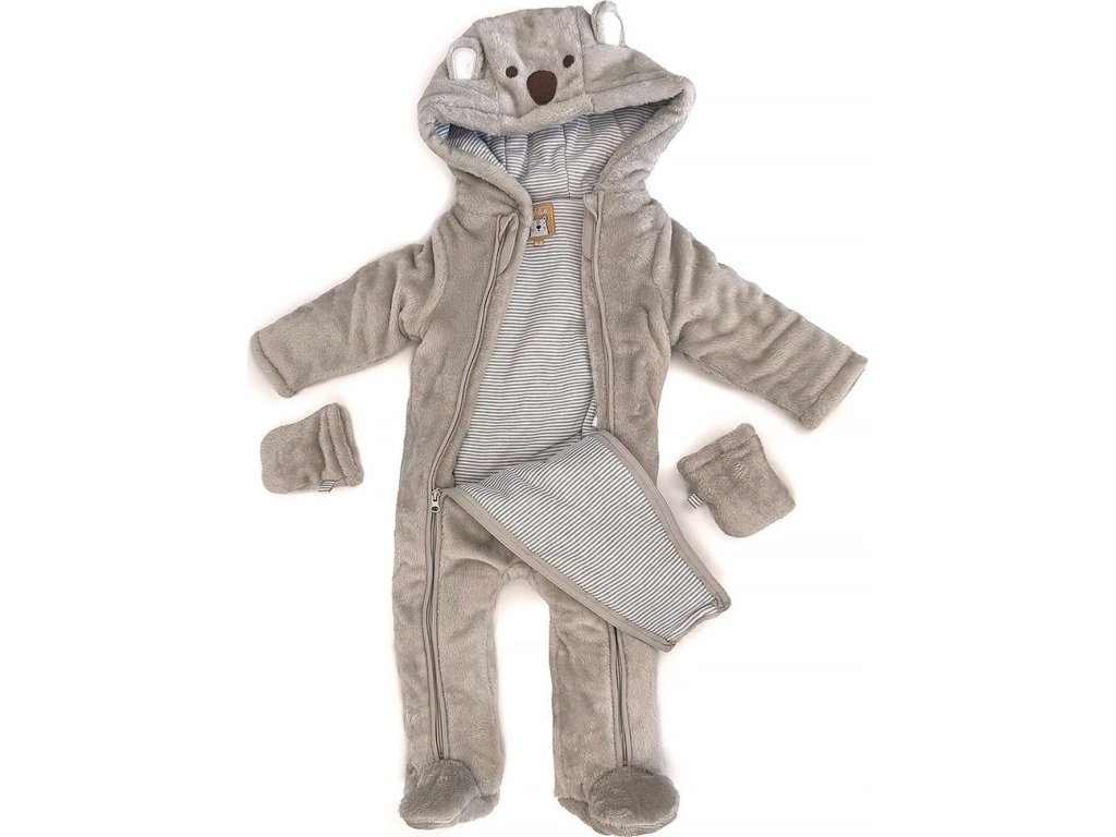 Nenucené zvířecí motivy v jemných barevných odstínech dodávají kombinéze hravý a roztomilý vzhled, který se hodí pro děvčátka i chlapečky.