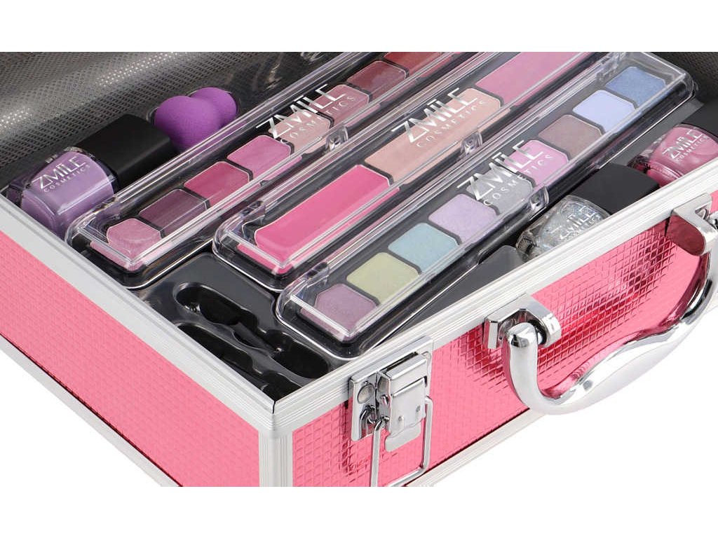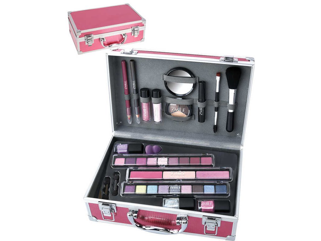 Růžový kosmetický kufřík s hliníkovým rámem - set dekorativní kosmetiky Marry Berry pro dospělé od Zmile Cosmetics. Nyní můžete vymýšlet každý den nový, úžasný look! Kufřík plný líčení, se kterým si budete připadat jako profesionální make-up artista.